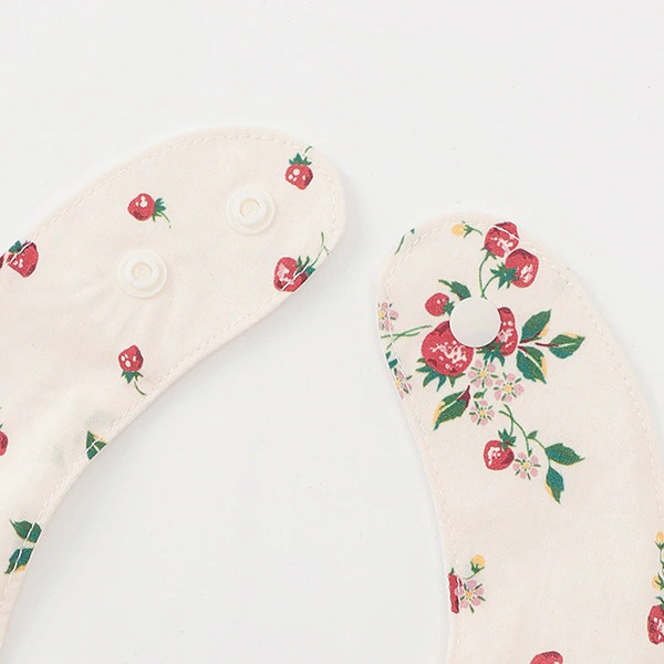オーガニックコットンを使用しています。首周りはスナップボタンで2段階調節可能で2歳位までお使いいただけます。