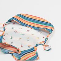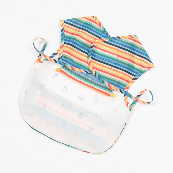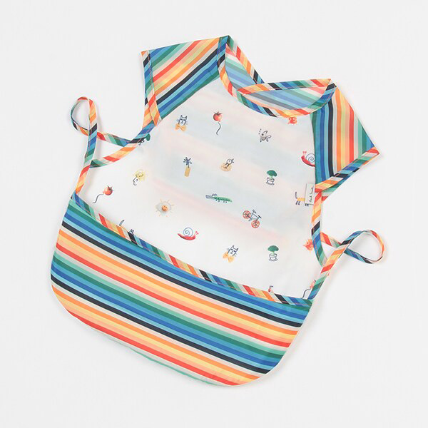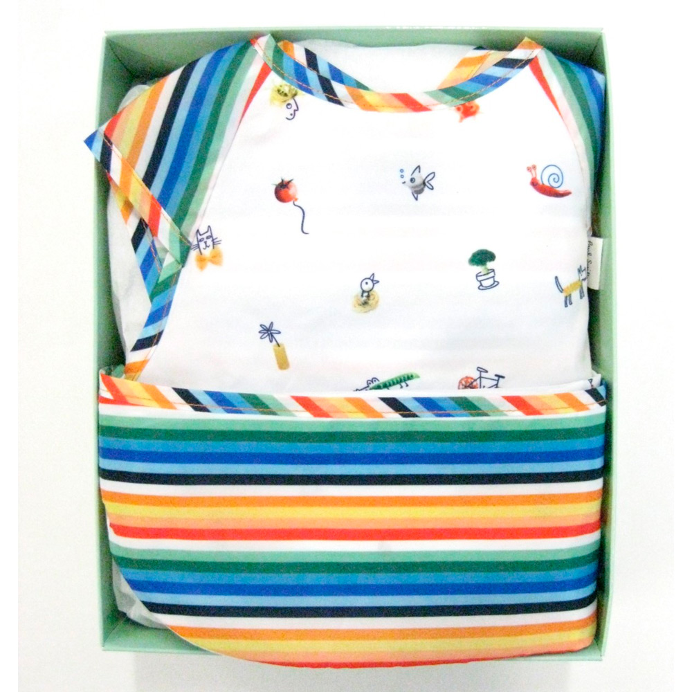 鮮やかなストライプにフードモチーフがプリントされた、使って楽しいユニークなお食事スタイです。BOX入りなので、ギフトとしておすすめです。