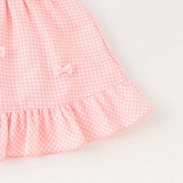 トップス:(柄部分)ポリエステル100%、(無地部分)綿100%、(レース部分)綿100%、ボトム:ポリエステル100%
