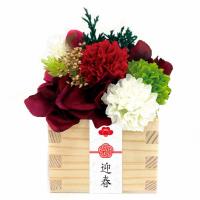 玄関等に置くと新年のおめでたい雰囲気に。桝に自然葉やアーティフィシャルフラワーなどをアレンジしたお正月飾りです。