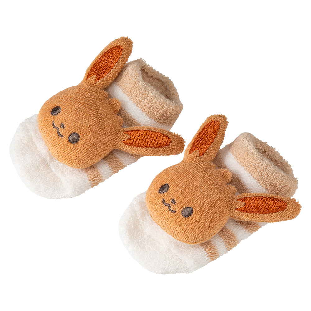 つま先にイーブイのふわふわのワンポイントが付いているので、まだ動き回れない赤ちゃんでもつま先を触ったりして興味津々。