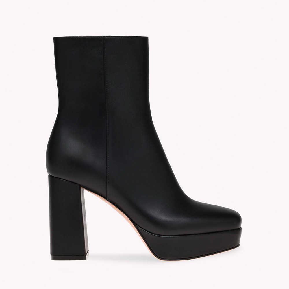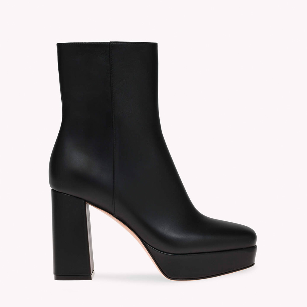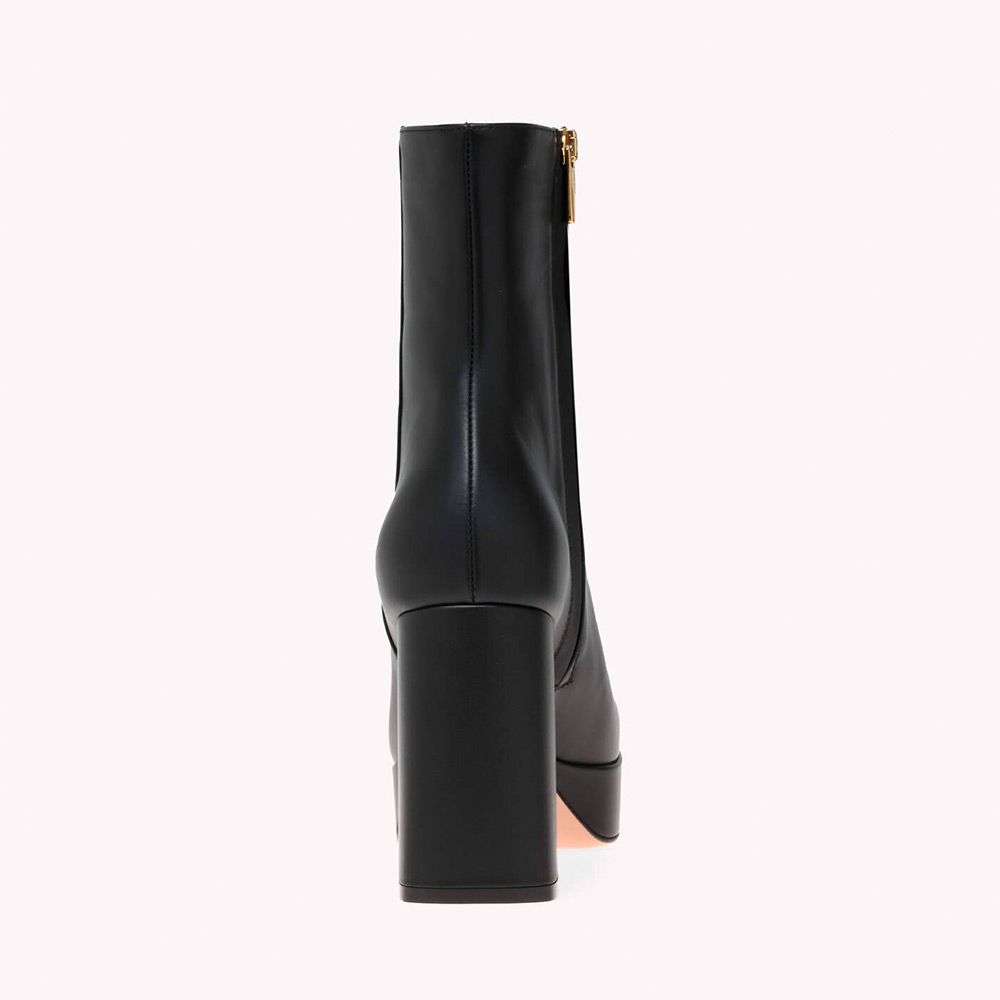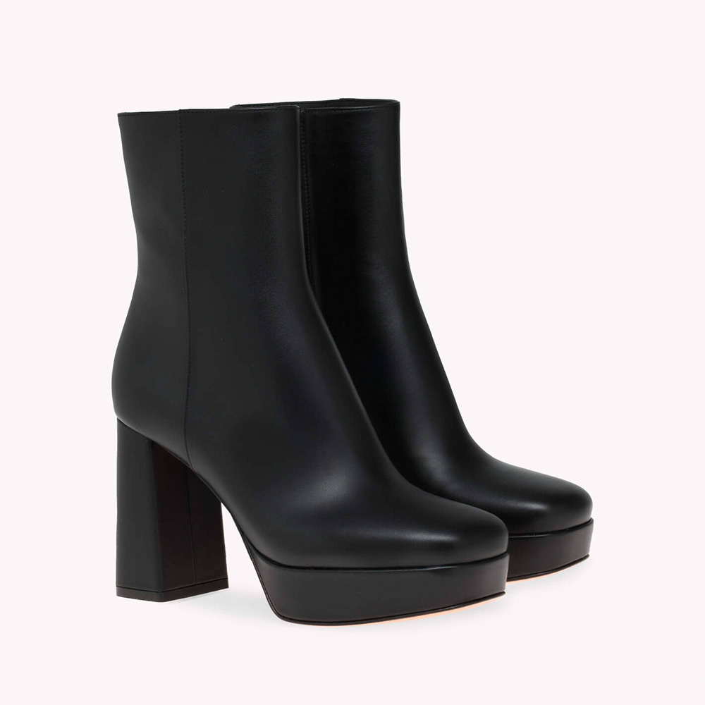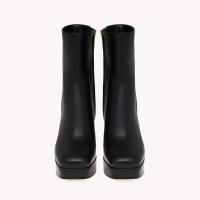 厚底デザインが目を引くスクエアトゥのプラットフォームアンクルブーツ、Daisen。滑らかな仕上がりのアッパーと、柔らかく足を包み込むソックスのようなシルエットが魅力です。ハンドメイドで仕上げられています。