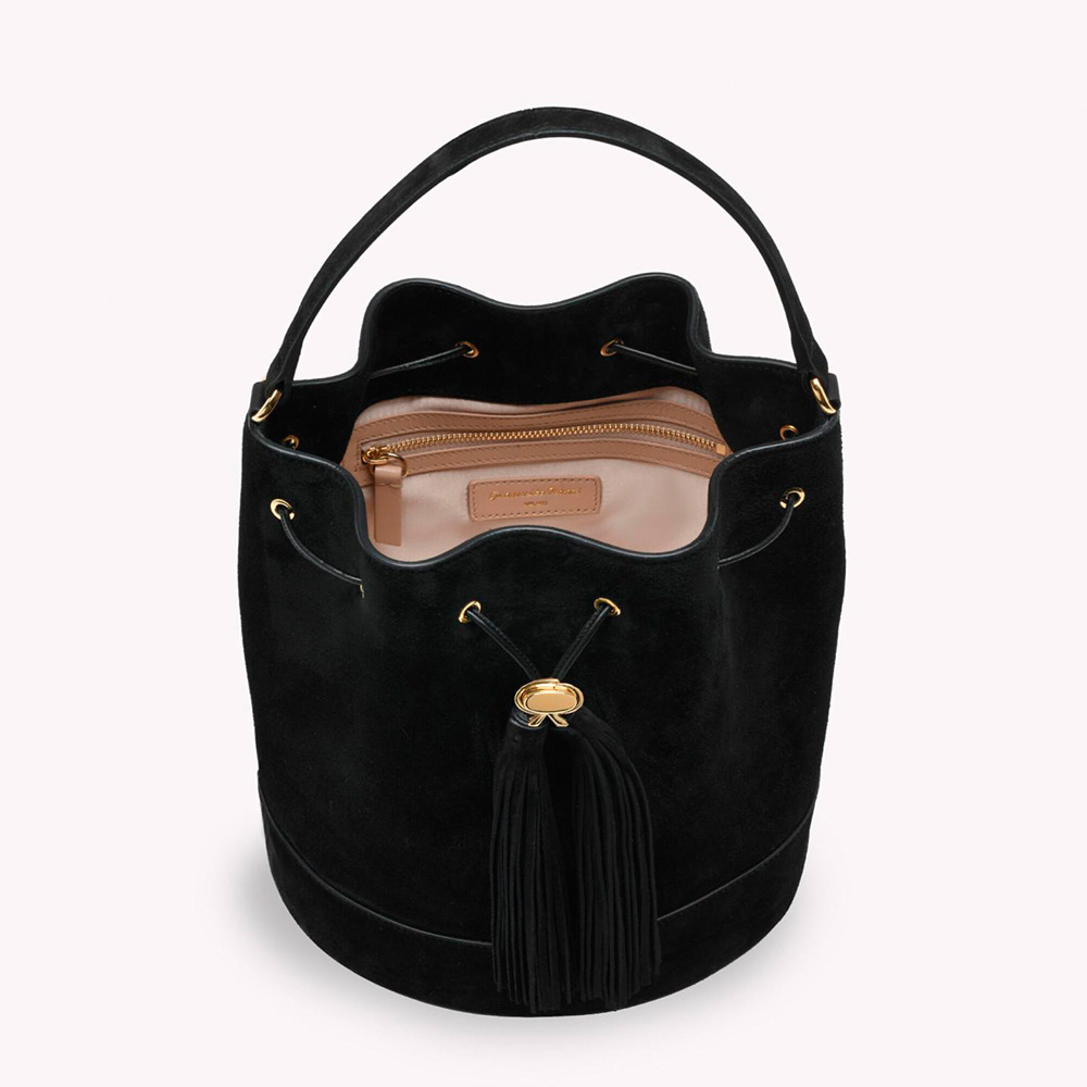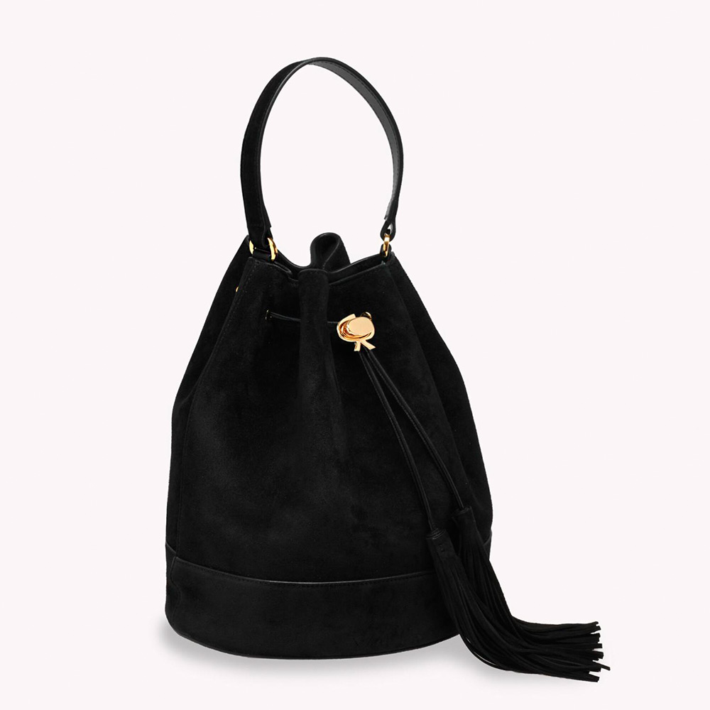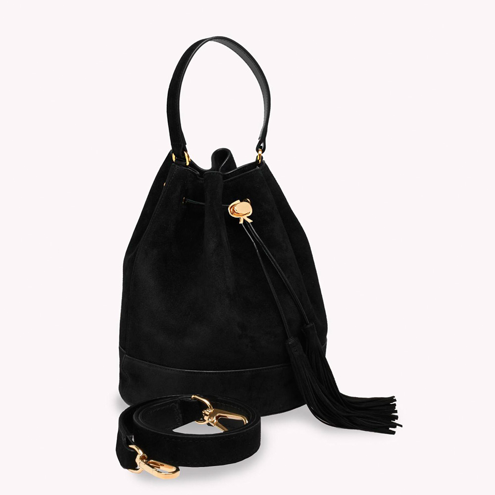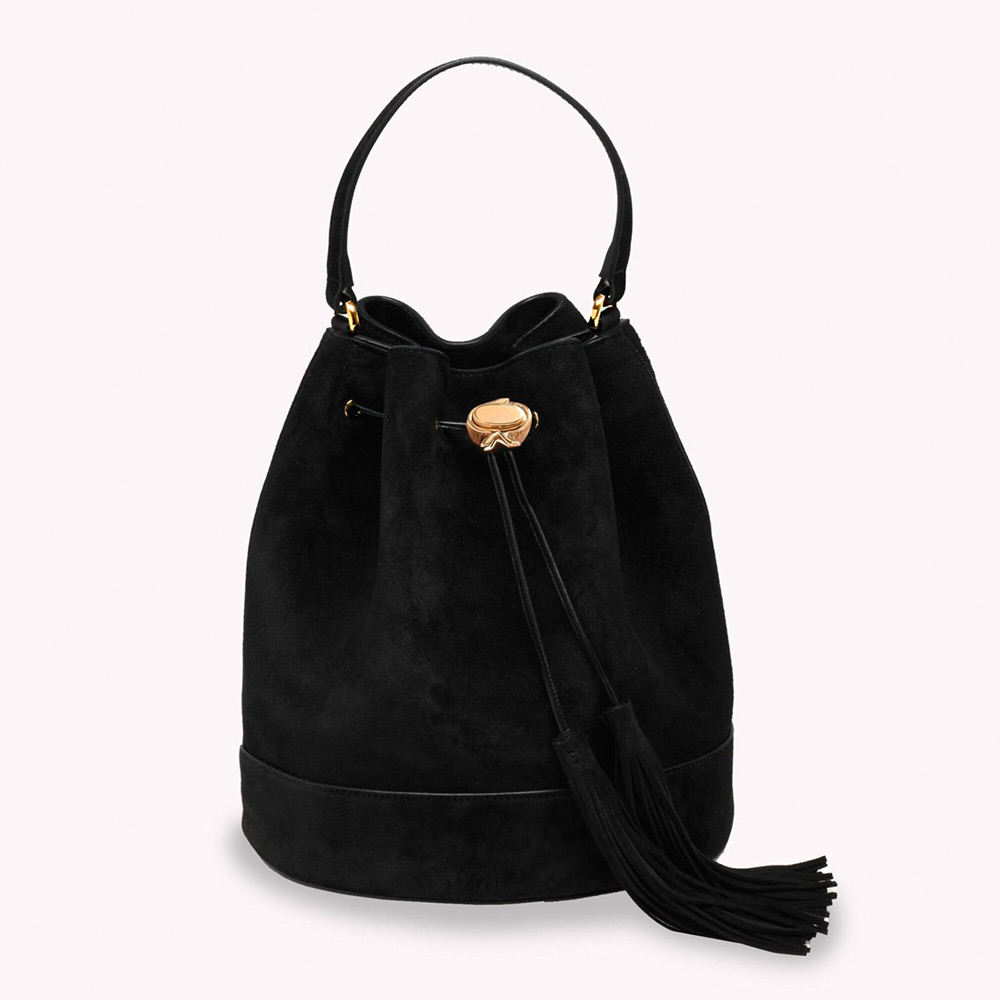 しなやかなスエード地から丹念に作り上げたバケットバッグ、Sienna 22。トップハンドルと調整・取り外し可能なショルダーストラップ、トグルパーツとして表現したシグネチャーのリボンディテールが際立つデザインです。ライニングにはサテン地を使用、内側にはポケットとメタル製ジッパーを備えています。