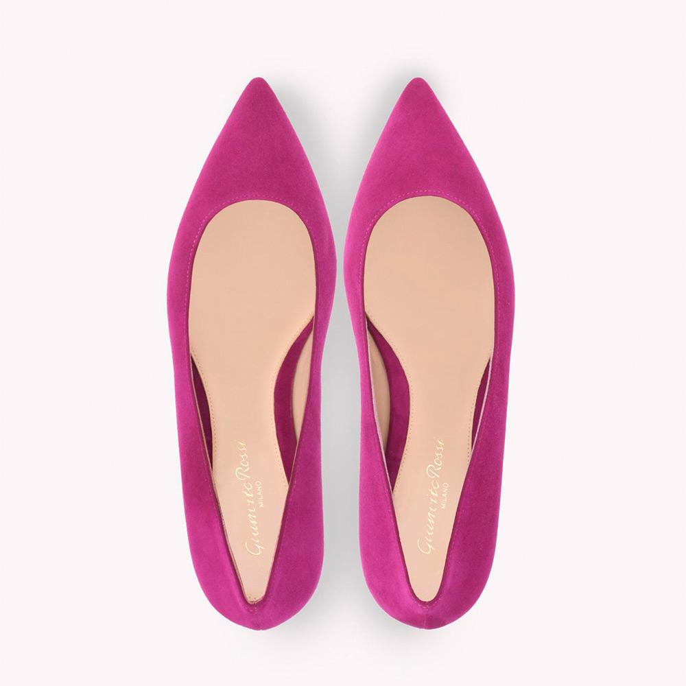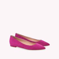 ポインテッドトウのバレエシューズデザインが魅力を放つ、Gianvito Flat。5mmのスタックヒールが際立つ、しなやかなスエードから丹念に作り上げた一足です。