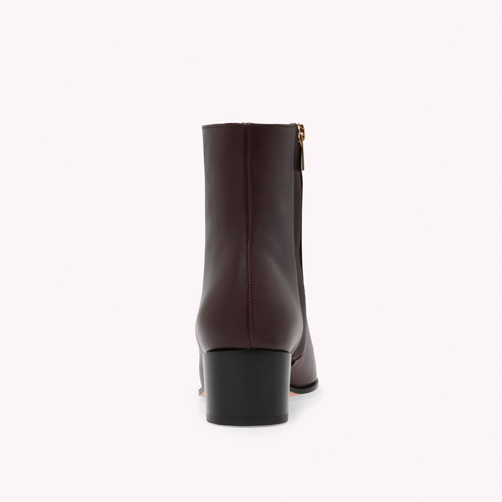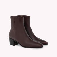 レザーから丹念に作り上げた、Spencer。高さ45mmのレザー製スタックヒールを備えた、アーモンドトゥのブーティです。足首を包み込むようなフィット感をお楽しみください。両足の内側に脱ぎ履き用の同系色のジッパー付き。