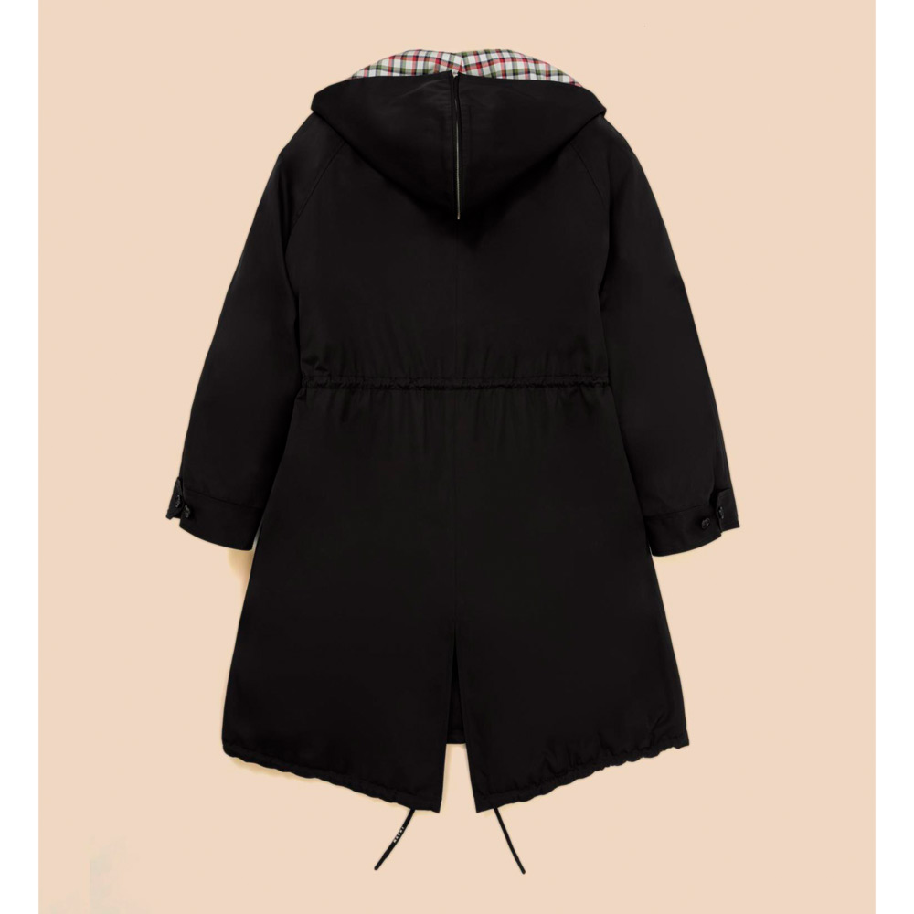 ジャパンエクスクルーシブの特別なコートをご紹介。カラフルなチェックフランネルの裏地が特徴的なオープンフーディータフタコート。薄い中わた入りであたたかく、開くと大きな襟になるジップ付きのフードがポイント。ドローストリングの調整によりウエストをシェイプすることが可能です。