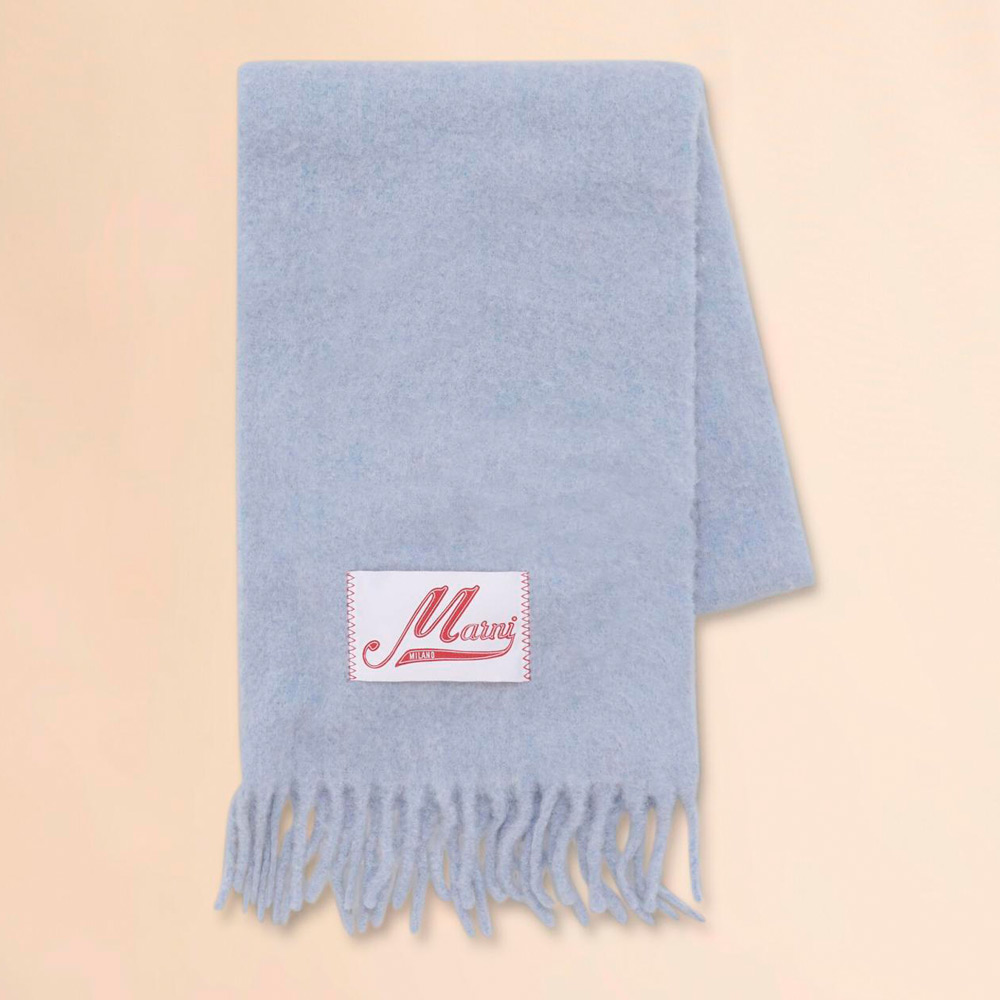 アルパカ混紡素材で柔らかく風合い豊かなマフラー。ロゴラベルがアクセントに。※伸縮性のある素材のため、長さに個体差がございます。あらかじめご了承ください。
