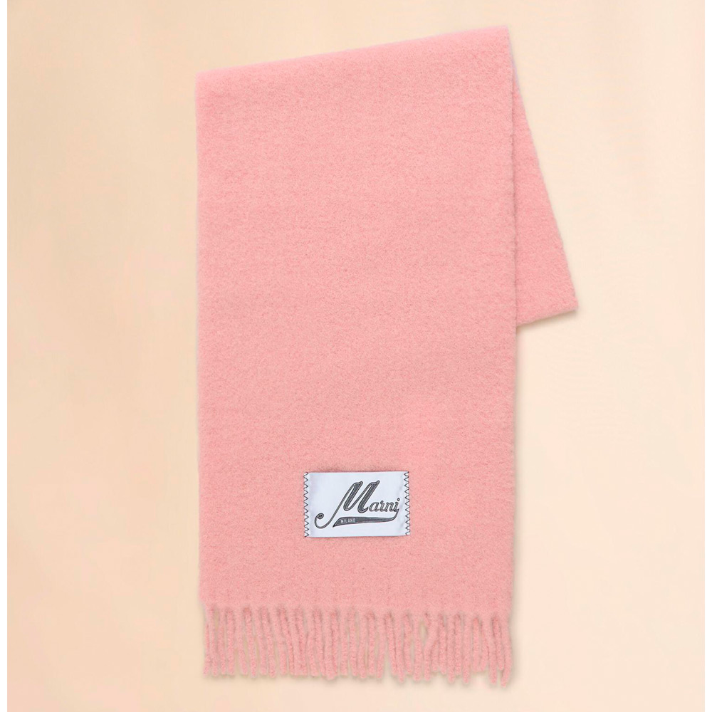 アルパカ混紡素材で柔らかく風合い豊かなマフラー。ロゴラベルがアクセントに。※伸縮性のある素材のため、長さに個体差がございます。あらかじめご了承ください。
