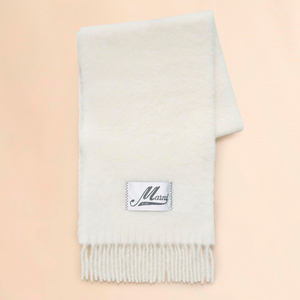 アルパカ混紡素材で柔らかく風合い豊かなマフラー。ロゴラベルがアクセントに。※伸縮性のある素材のため、長さに個体差がございます。あらかじめご了承ください。