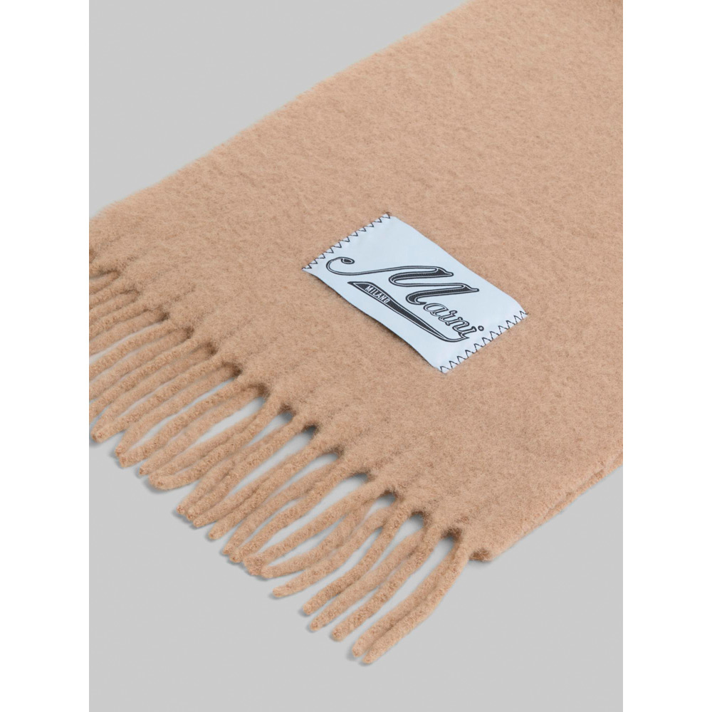 アルパカ混紡素材で柔らかく風合い豊かなマフラー。ロゴラベルがアクセントに。※伸縮性のある素材のため、長さに個体差がございます。あらかじめご了承ください。
