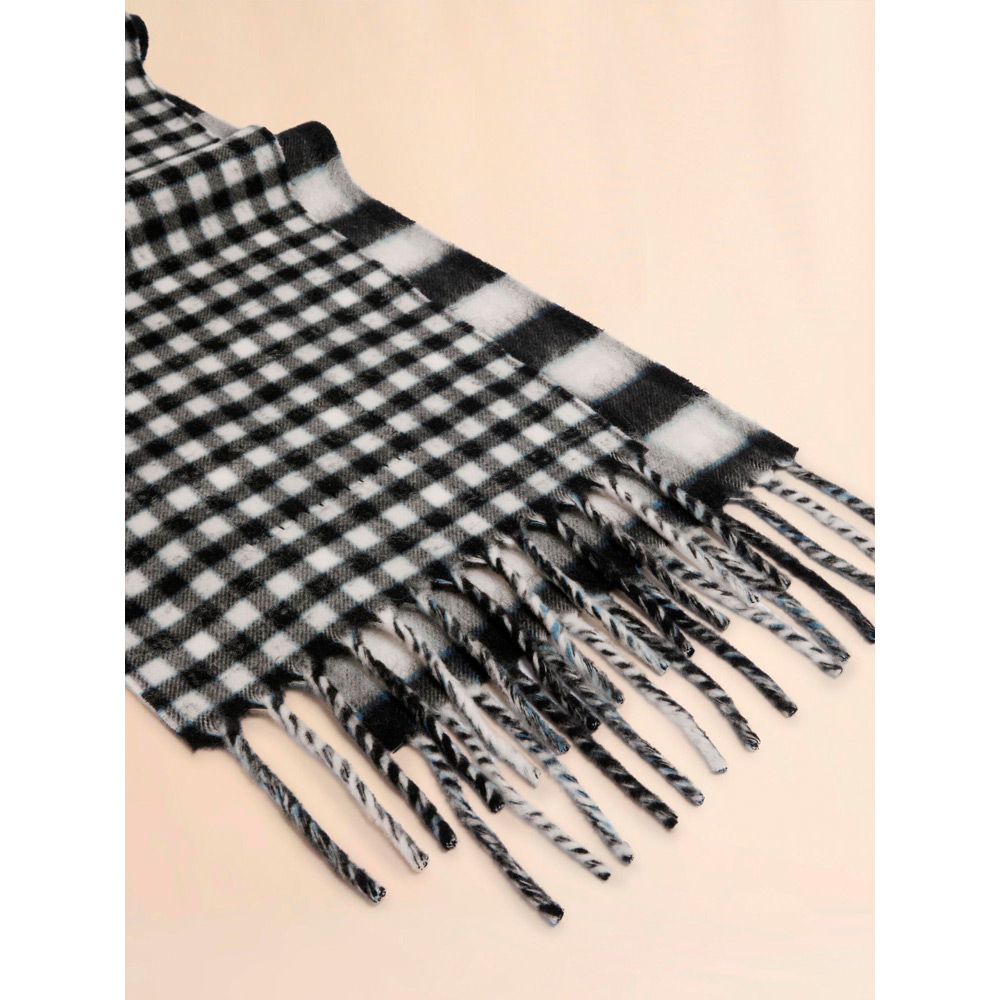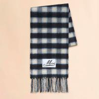 表面の大きいチェック柄、裏面の細かなチェック柄をリバーシブルで使用できる大判のマフラー。ロゴラベルがアクセントに。