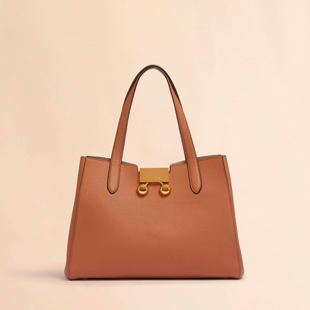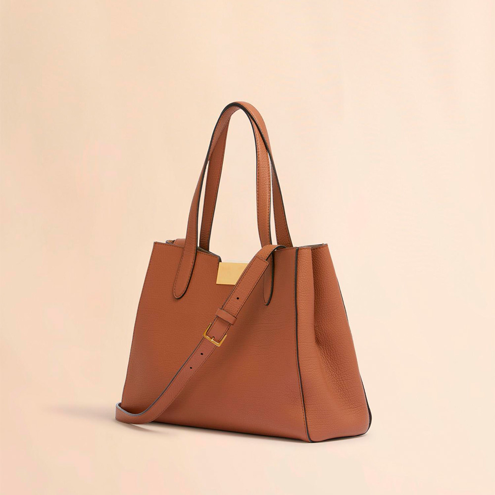 グレインレザー製の“TRUNKAROO”スモールトートバッグ。2つのコンパートメント、ジップポケット付き。メタルクロージャーがアクセントに。