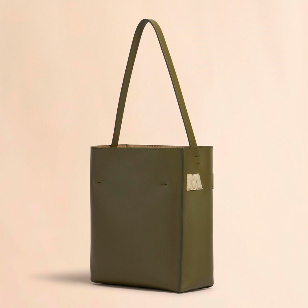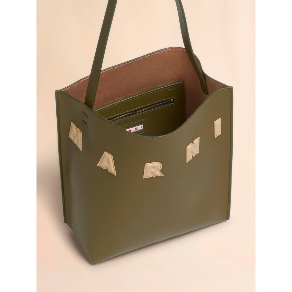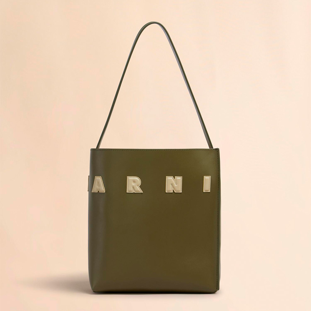 カーフレザー製“MUSEO”ホーボースモールバッグ。ワンショルダータイプで、フロントパネルに沿うようにデザインされたロゴがアクセントに。