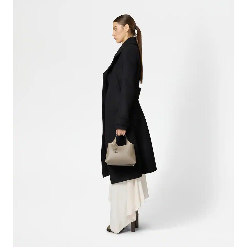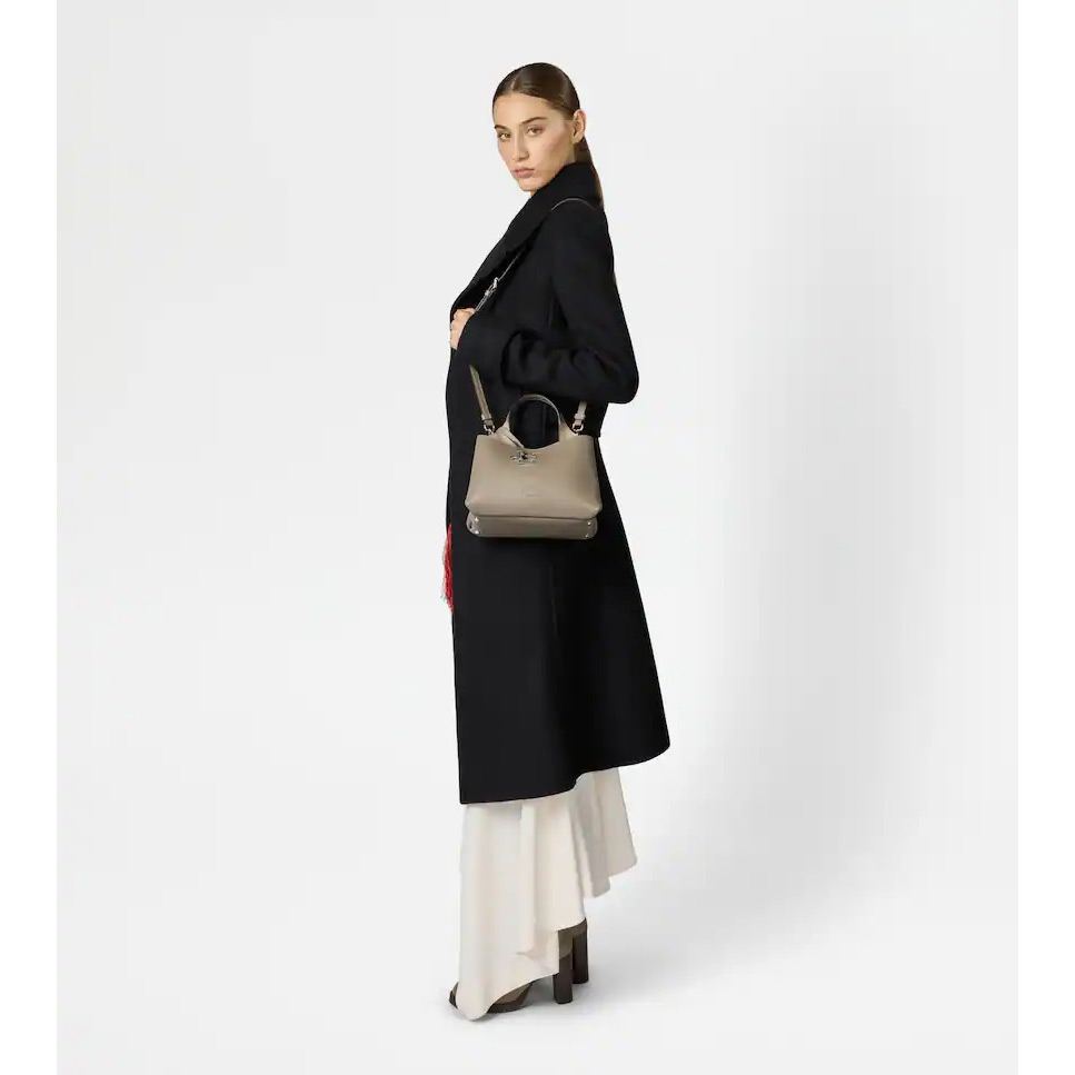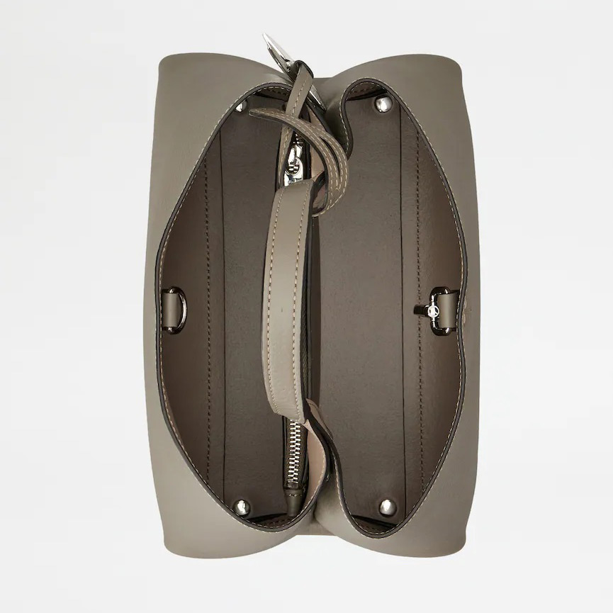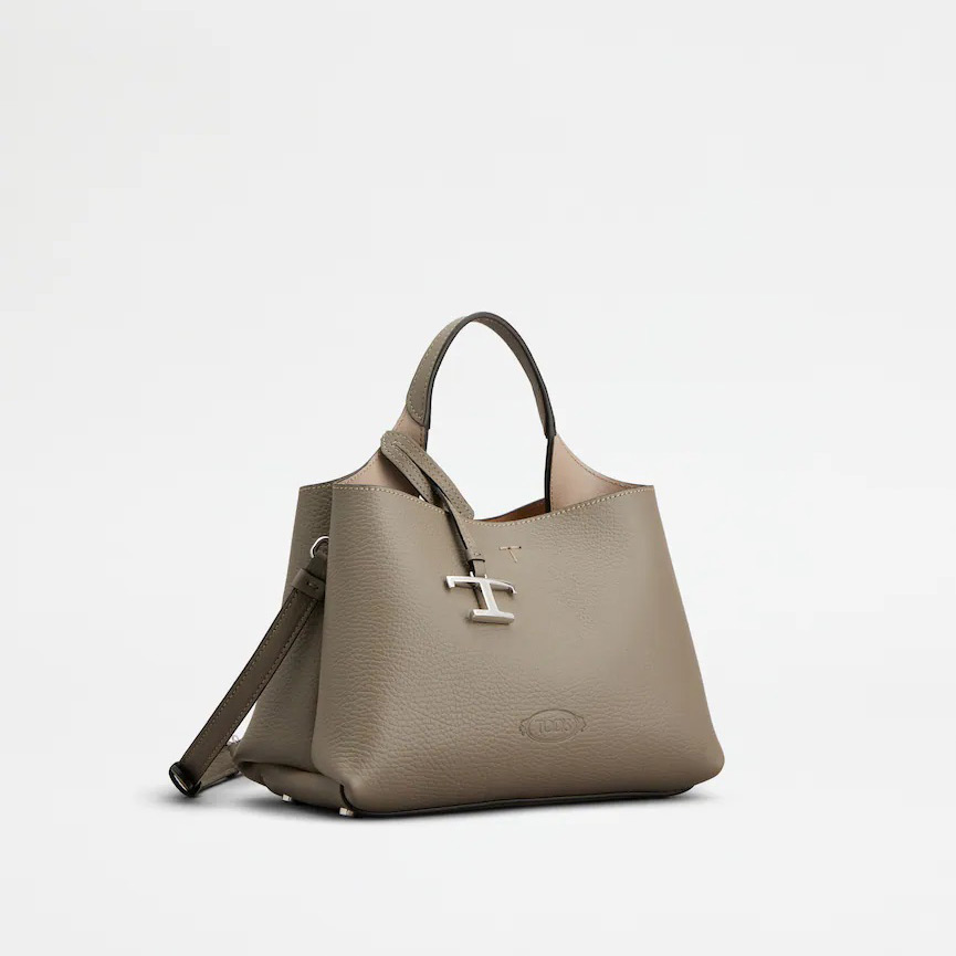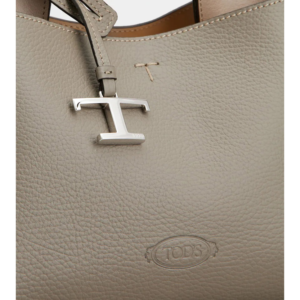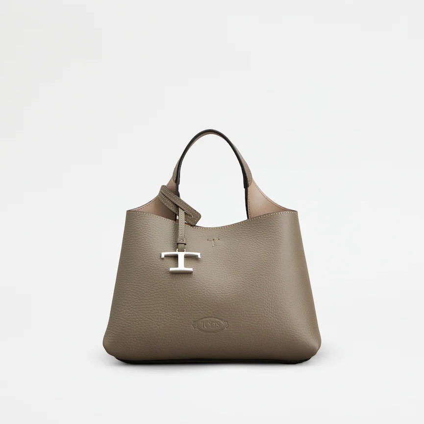 グレインの美しさが際立つ柔らかなレザーのバッグ。フロントにホットスタンプのトッズ ロゴ、フラット ハンドル、取り外し可能なショルダー ストラップを合わせました。内部の2つのコンパートメントはファスナー付きのポケットで仕切られています。T タイムレス メタル ペンダント、T ステッチをあしらい、トッズならではのアイコニックなディテールが光るエレガントなスタイルです。