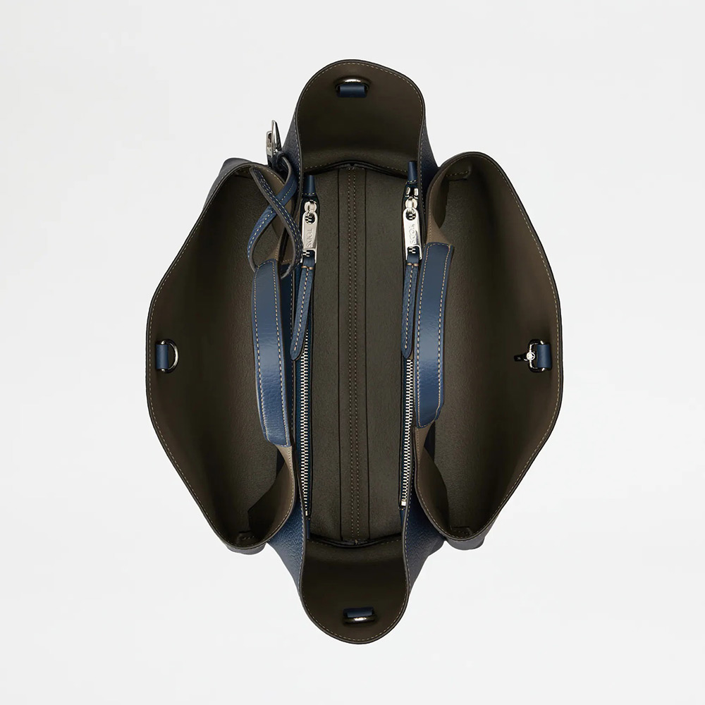グレインの美しさが際立つ柔らかなレザーのバッグ。フロントにホットスタンプのトッズ ロゴ、フラット ハンドル、取り外し可能なショルダー ストラップを合わせました。内部の3つのコンパートメントはファスナー付きのポケットで仕切られています。T タイムレス メタル ペンダント、T ステッチをあしらい、トッズならではのアイコニックなディテールが光るエレガントなスタイルです。