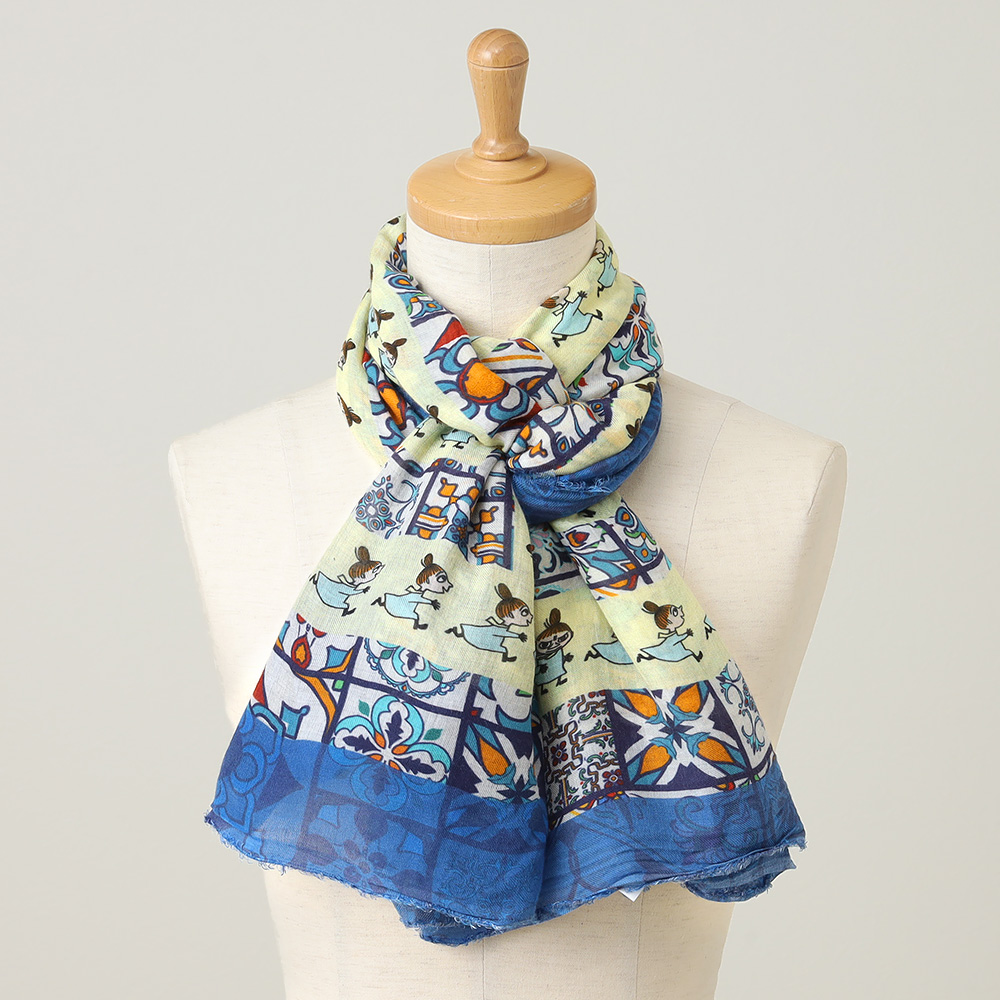 オットトレディッチとムーミンがコラボした大判ストールです。色鮮やかなブルーのミーがモチーフのキュートなデザインです。巻き方によってさまざまな表現を楽しめます。