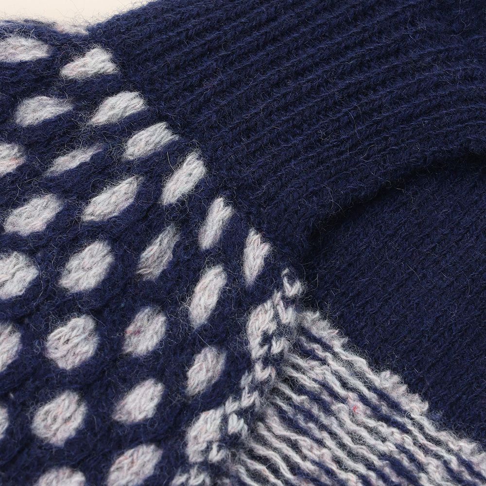 回収したカシミヤ100%の製品や工場で不要となった残糸や残反を裁断し綿状に戻した繊維とカシミヤの新毛をブレンドして「生まれ変わるカシミヤ」という新たな糸をつくりました。生まれ変わるカシミヤ糸を一部に使用した、カシミヤ100%のコンパクトなニットマフラーです。裾をスリットに通すだけで簡単にスタイルが決まります。