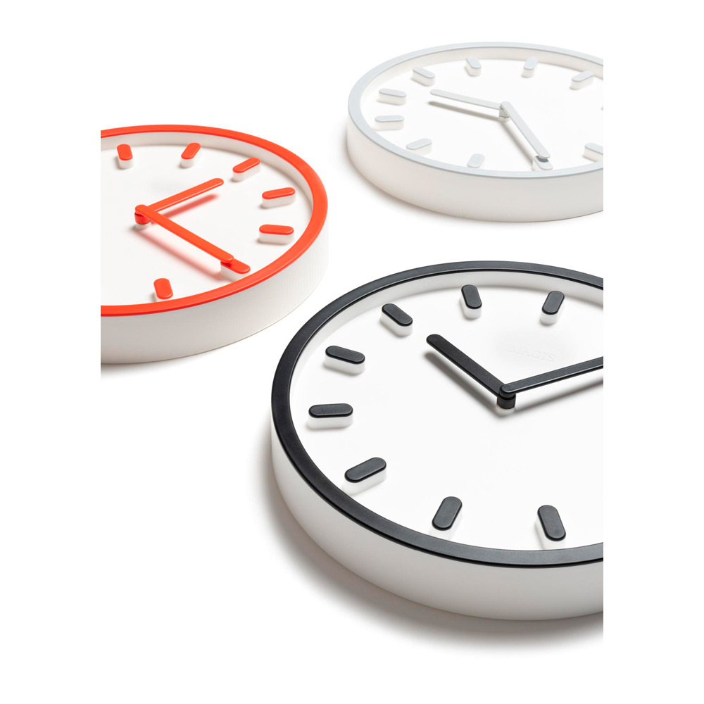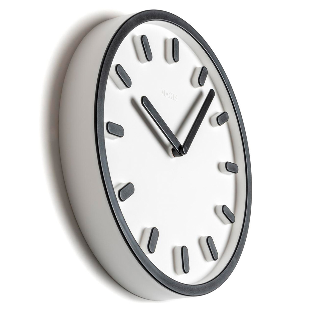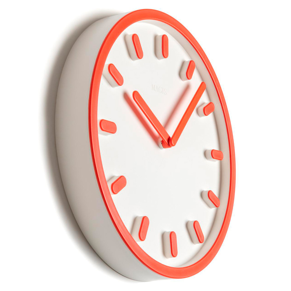 プロダクトデザイナー深澤直人氏による、どこか懐かしく親しみやすい壁掛け時計。コンピュータ画面の時計アイコンを思わせるデザインは、丸みのある白いベースと、グラフィカルな針が印象的。軽量なプラスチック製で扱いやすく、壁にも簡単に取り付け可能です。マジスらしい遊び心のあるカラーリングが、空間にさりげないアクセントを添えます。ご自宅用にはもちろん、ギフトにもおすすめの一品です。