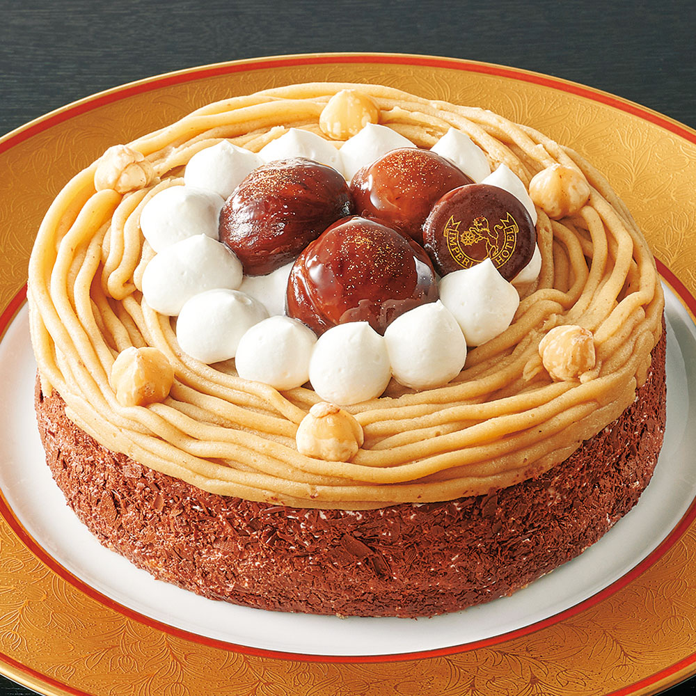 渋皮付き栗のダイスカットをクリームと合わせ、スポンジ生地でサンドし、和栗のペーストを絞った人気のモンブランケーキです。