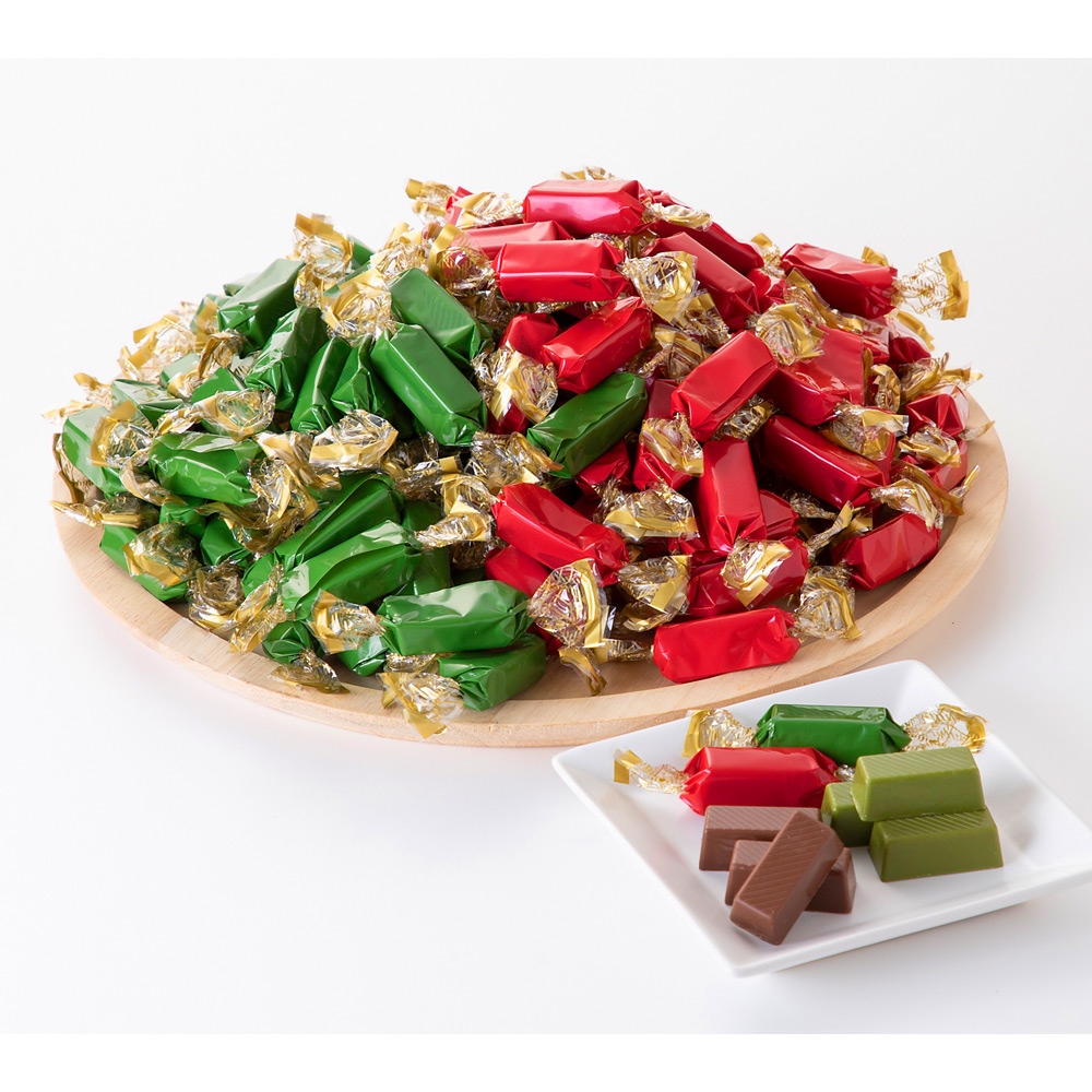 コクのあるまろやかな甘さのミルクチョコレートと京都宇治の香り高い抹茶を使用した抹茶チョコレートをたっぷりお楽しみください。