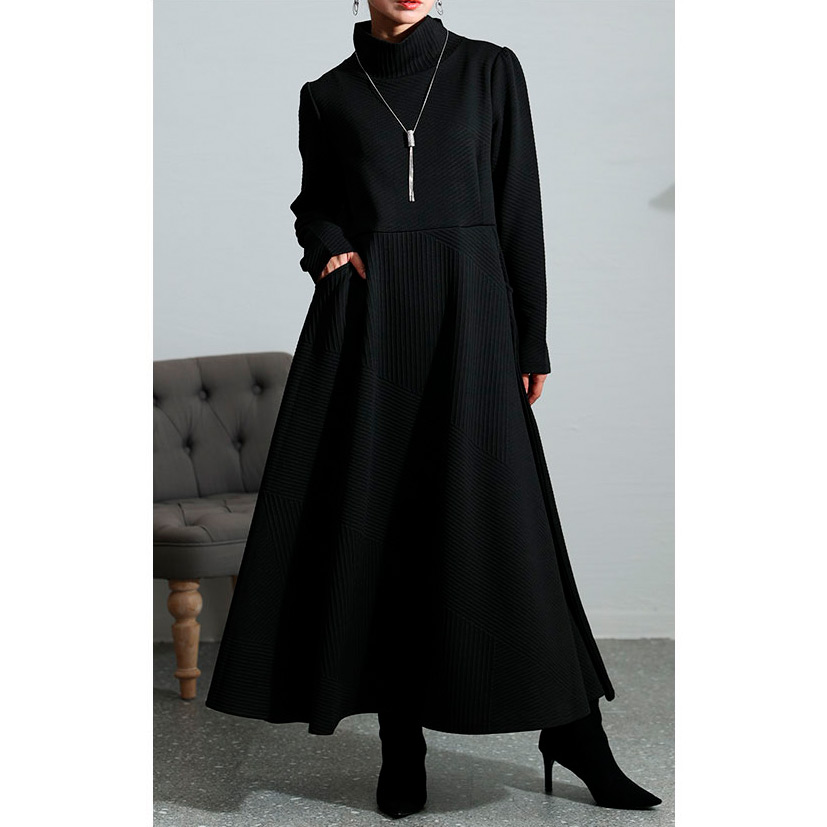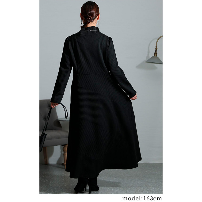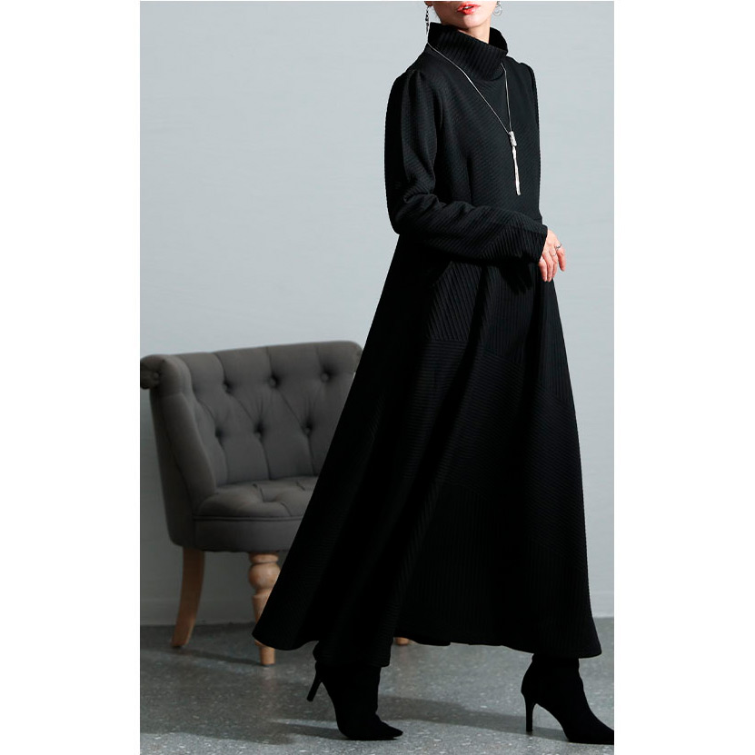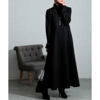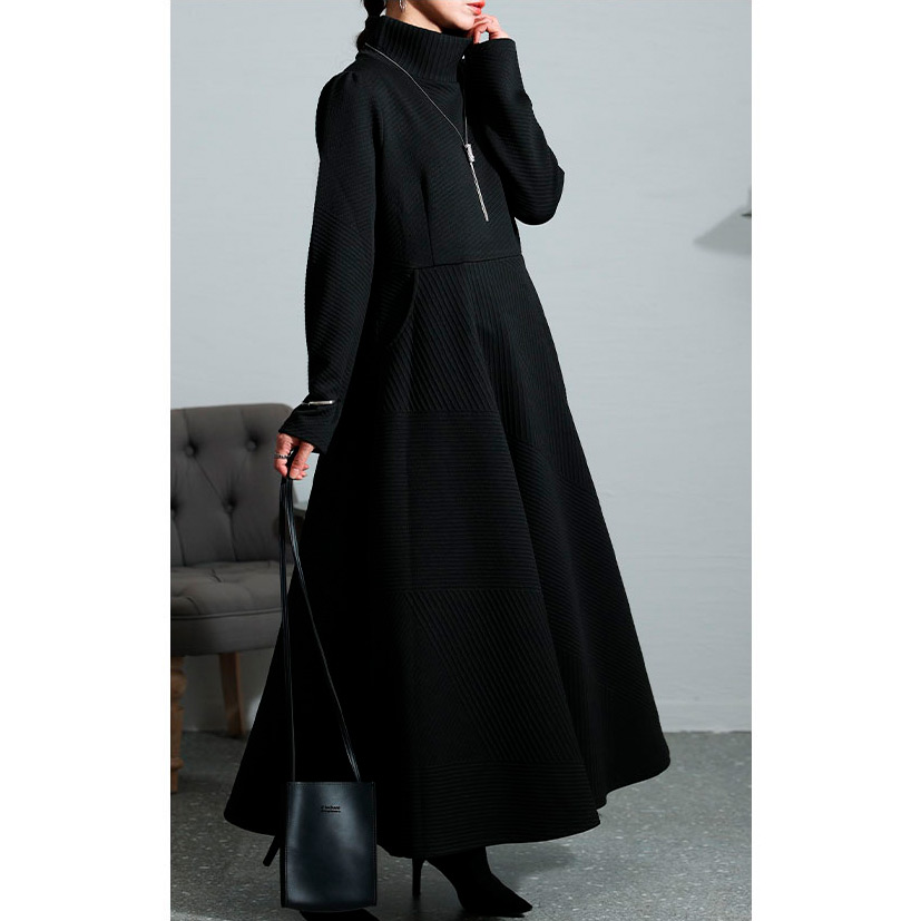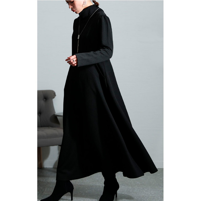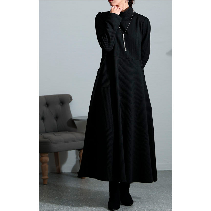 レディース 大人 モード スタイルアップするハイネックワンピース