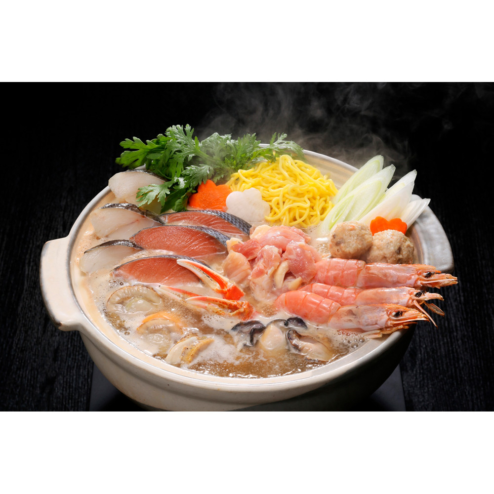 北海道の魚を中心に、魚と肉のおいしさを両方お楽しみいただけるバラエティ豊かな鍋セットです。具材のおいしさを味噌と醤油もろみで旨み豊かに仕上げた特製鍋つゆでお楽しみください。