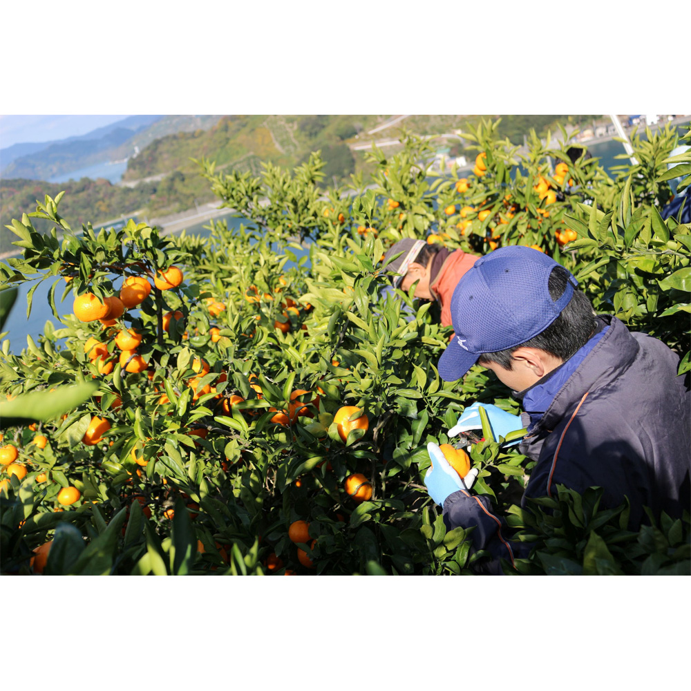 「日の丸みかん」で有名な温州みかんの専作地域、愛媛県八幡浜市向灘(むかいなだ)地区。「媛一みかん」は、その八幡浜市向灘地区で栽培されています。その園地は「海向き」。なんとほぼ全ての園地が南向きで、まっすぐに水平線を臨んでいます。東西数キロにもおよぶ帯状で、太陽光、石垣の反射光、海面の反射光が、たっぷりとふり注ぎます。見事な段々畑で、水はけの良い急斜面であることは、みかん作りにおいて、うってつけの環境となっております。「媛一みかん」は、皮が非常に薄く、甘くてコクのあるのが特徴です。園主の小林氏はみかん農家の三代目です。いつもの口癖は、「向灘には、よう三つの太陽がある云うて言われるけど、うちのみかんには、もうひとつの太陽があるんよ。それは、みかん作りへの情熱なんよ。おいしいみかん、喜んでもらえるみかんを作りたいんよ。情熱が無いとおいしいみかんは出来んけん。」です。「媛一みかん」をぜひ一度ご賞味くださいませ。