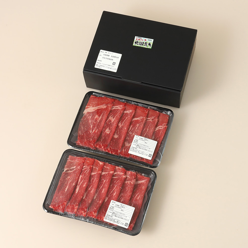 牧場の環境、気温、空気、水にこだわった北海道産の牛肉「北国育ち牛」。赤身肉のモモ肉をすき焼き用でお届けいたします。