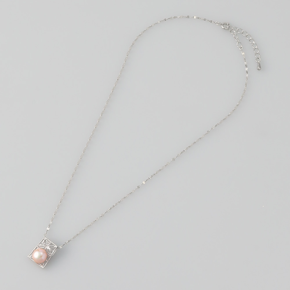 人の手を加えていない自然が生んだ、神秘的なパープルオレンジの輝き。キズの少ない上質な淡水パールが本来の美しい艶で胸元を上品に彩ります。シャープなスクエアデザインが甘すぎない大人の表情を演出。チェーンには、花びらのように光を反射して強く輝く人気のペタルチェーンを採用し、デコルテを繊細な煌めきで満たします。