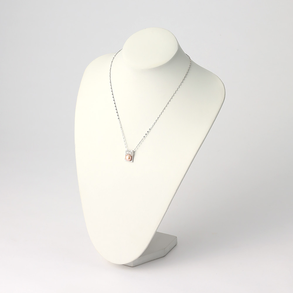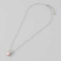 淡水養殖真珠約9mm1個(パープルオレンジ系・ボタン型)、枠:シルバー(ロジウムメッキ)、チェーン:サージカルステンレス(316L)