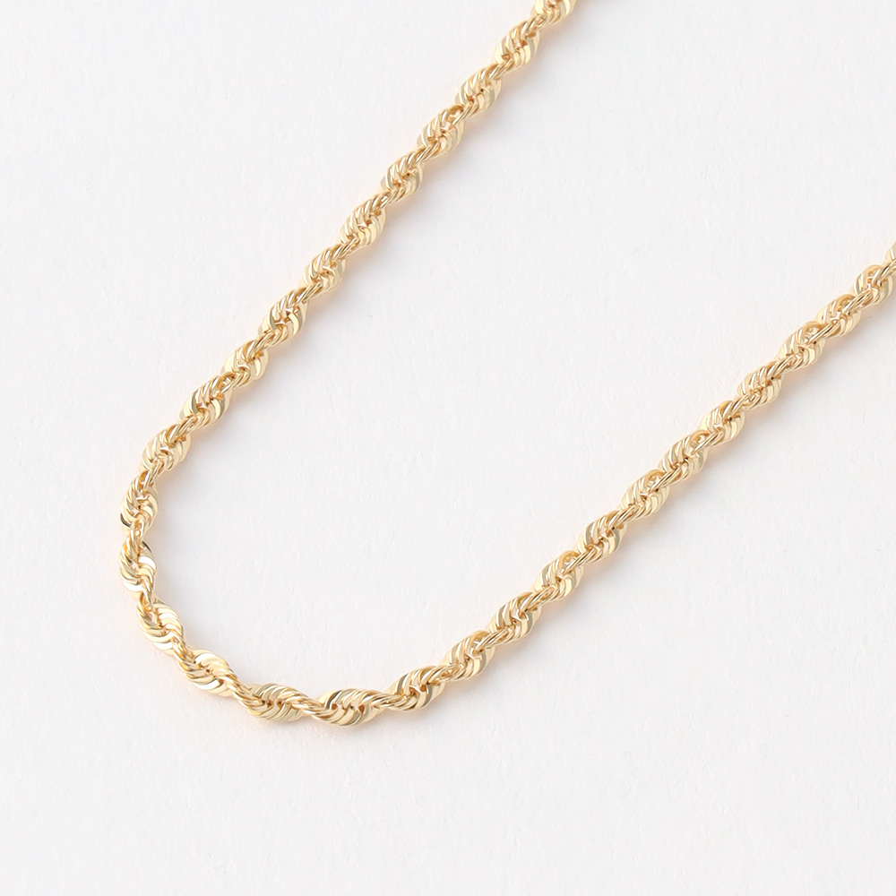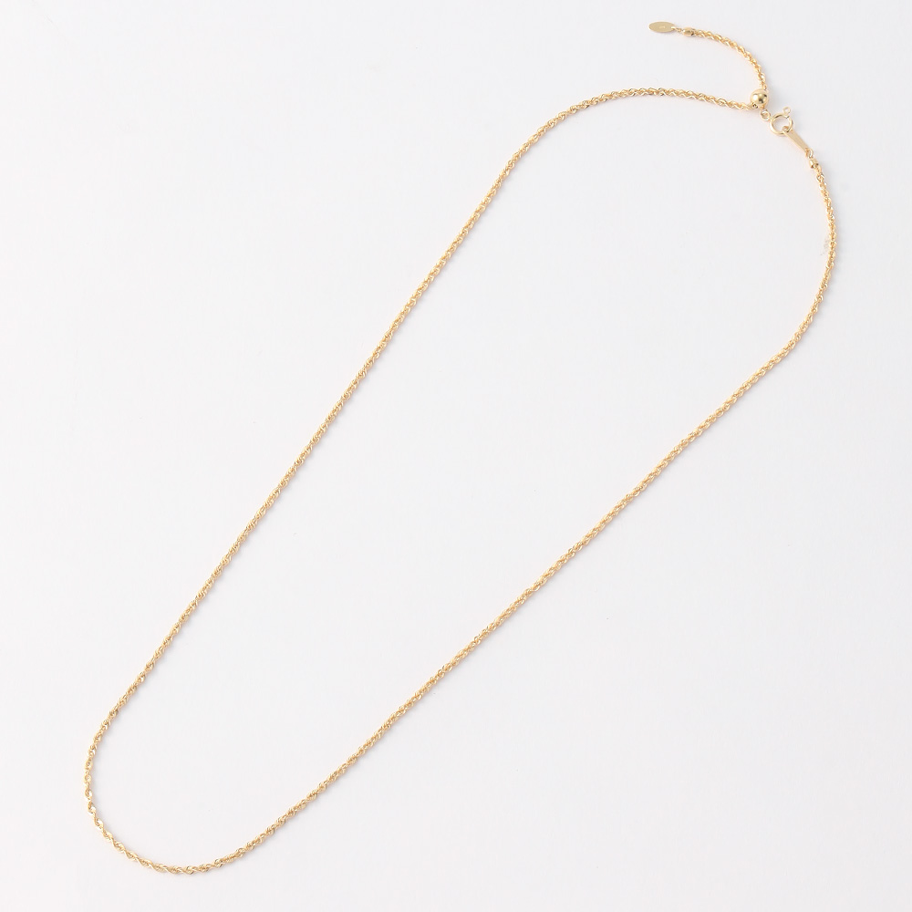 高度な中空技術を駆使して18金を効率よく使いボリュームたっぷりのロープネックレスに仕上げました。さらに、ひとコマひとコマに丹念に施された繊細なカットがネックレスが揺れるとキラキラと輝きを放って、胸元に豊かな存在感をアピールします。長さ60cmでボリュームたっぷりですので、そのままで着けたり、お手持ちのペンダントトップを付けたりと、大活躍すること間違いなしです。
