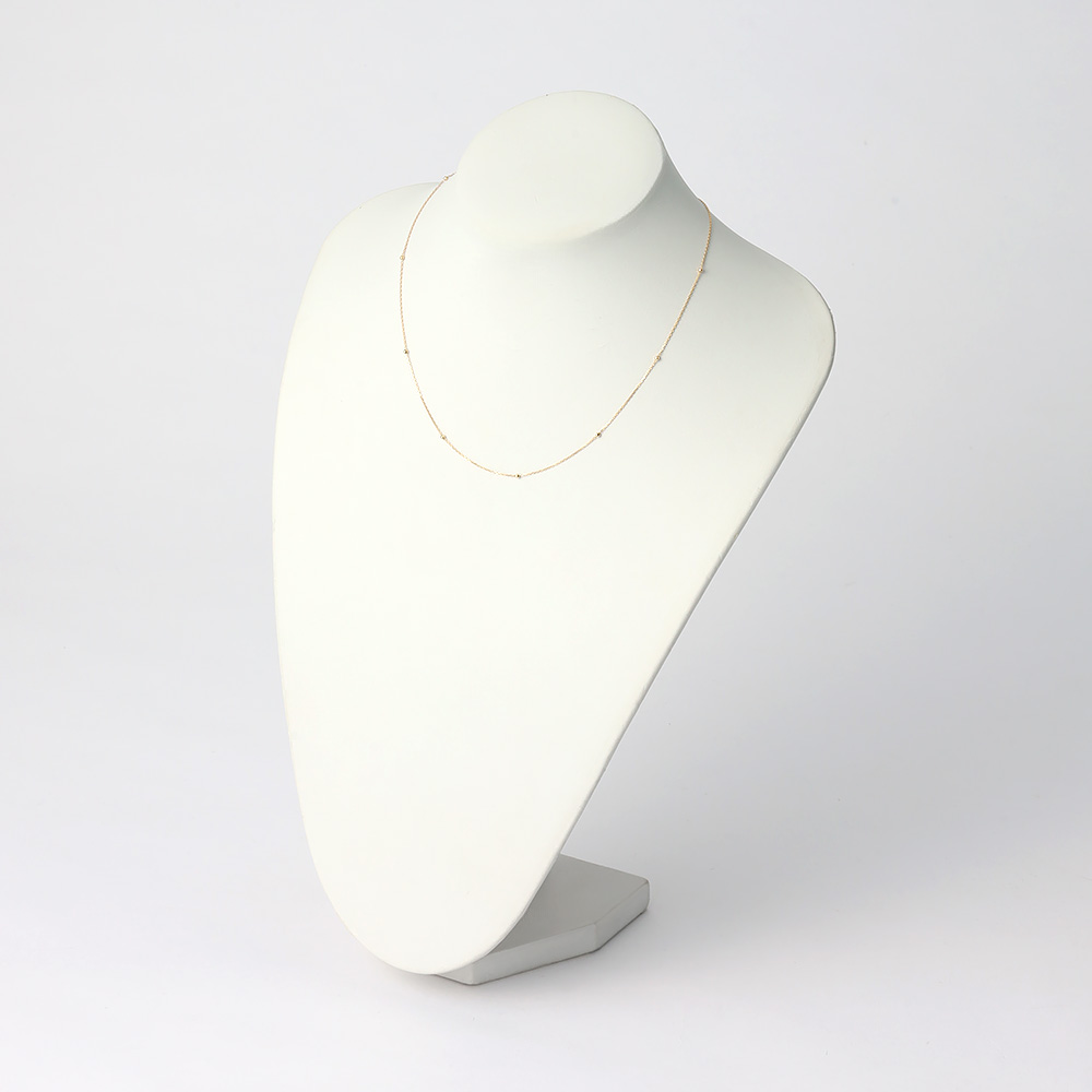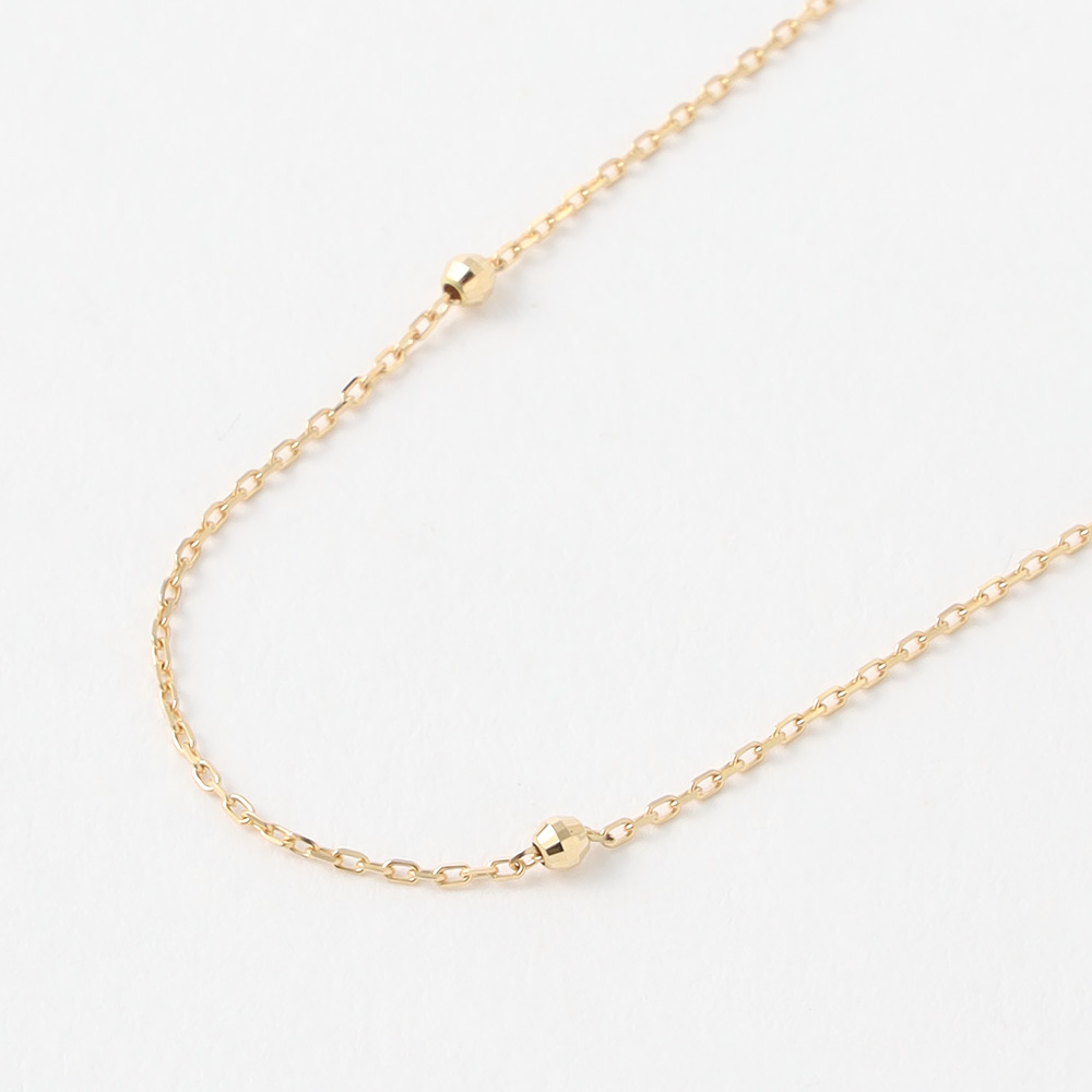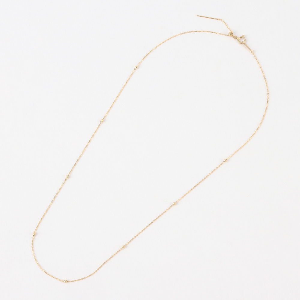 かわいいサイズのイエローゴールドミラーボールを約4cmの等間隔にアズキチェーンに配したステーションネックレス。長さ調節できるスライドピン金具付きです。