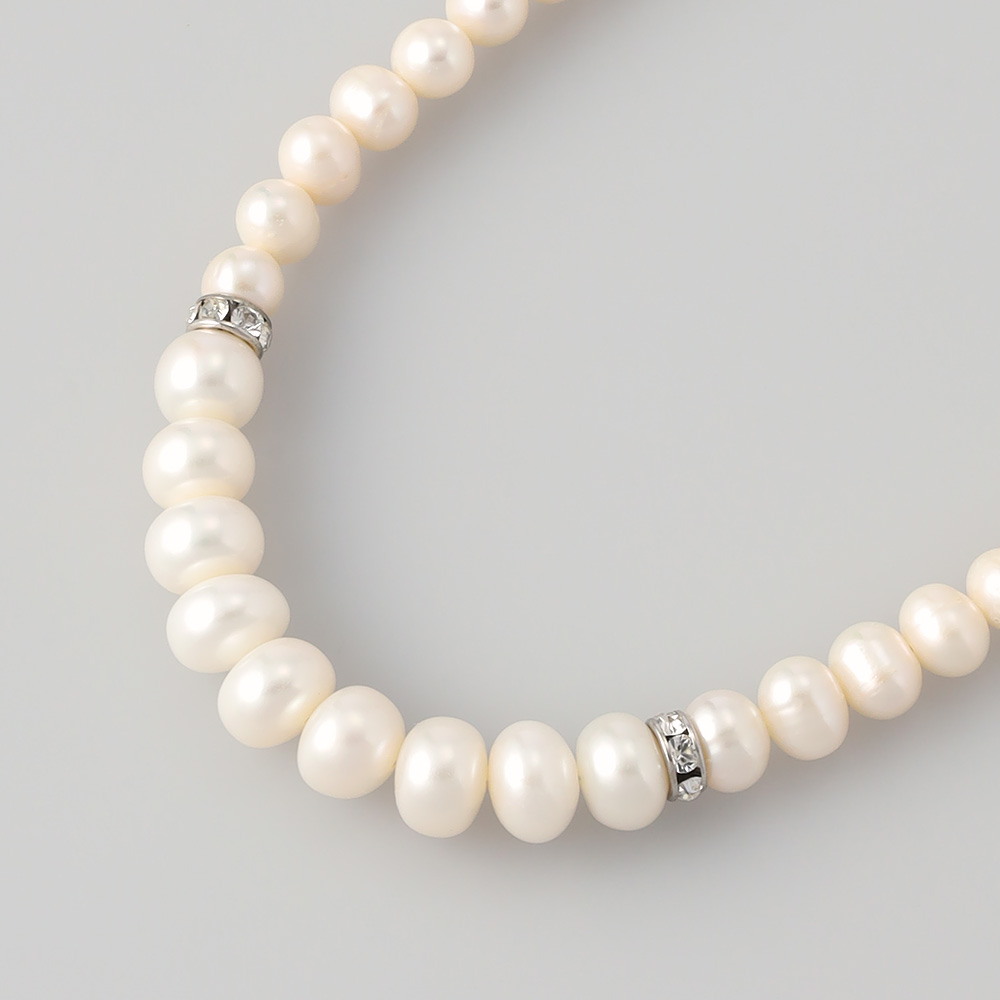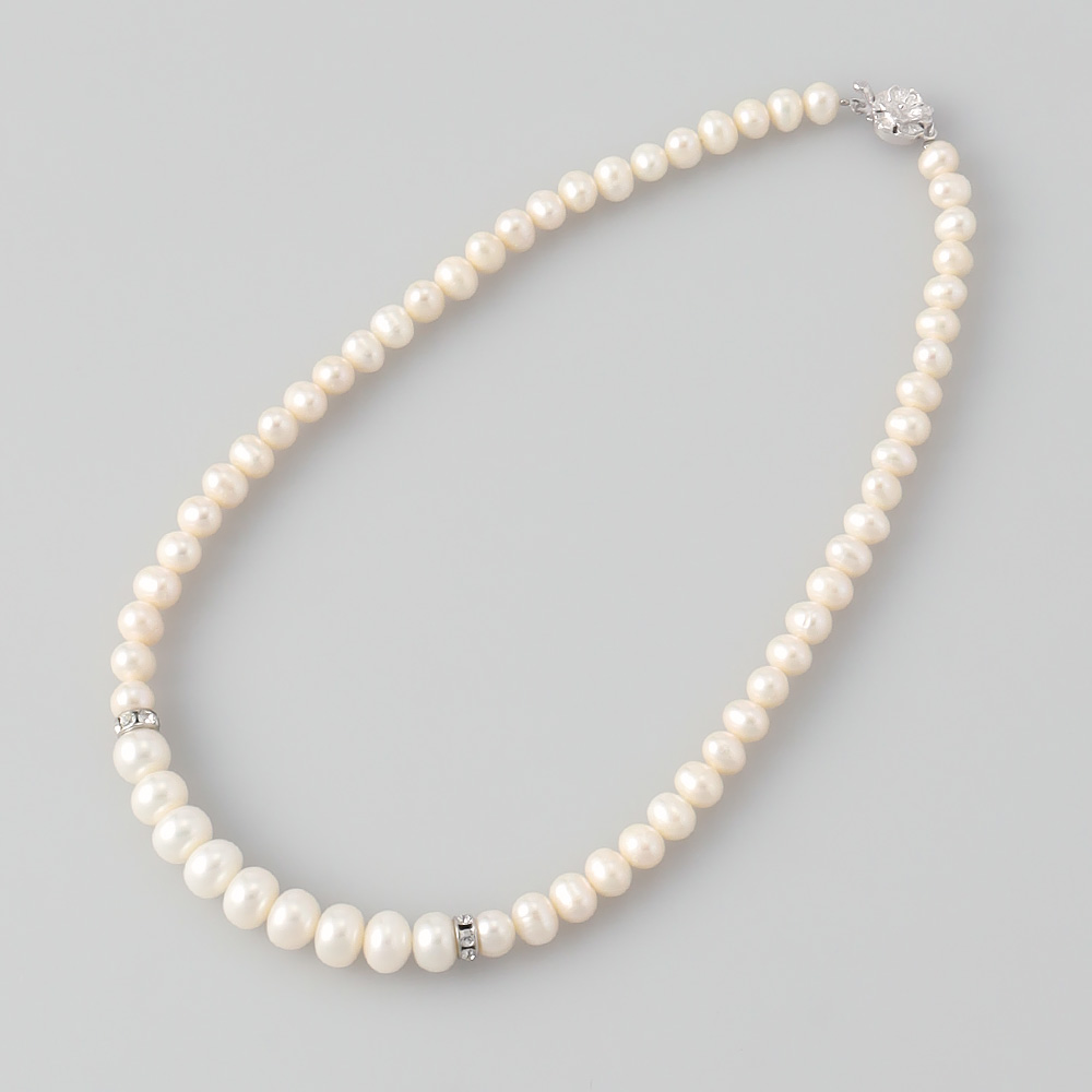 淡水養殖真珠約6~7mm、9~10mm、ガラスビーズ、シルバー(ロジウムメッキ)