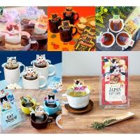 カップのフチにタグをひっかけるタイプのネコ型ティーバッグシリーズ。着せ替えが楽しめる商品「キャットタウン(ダージリン)」ほか、親子設定の「キャットカフェ(アールグレイ)」と「ベビーキャットカフェ(ルイボスティー)」、煎茶の「ジャパンキャットカフェ」など、かわいい6種類のネコ達が大集合。