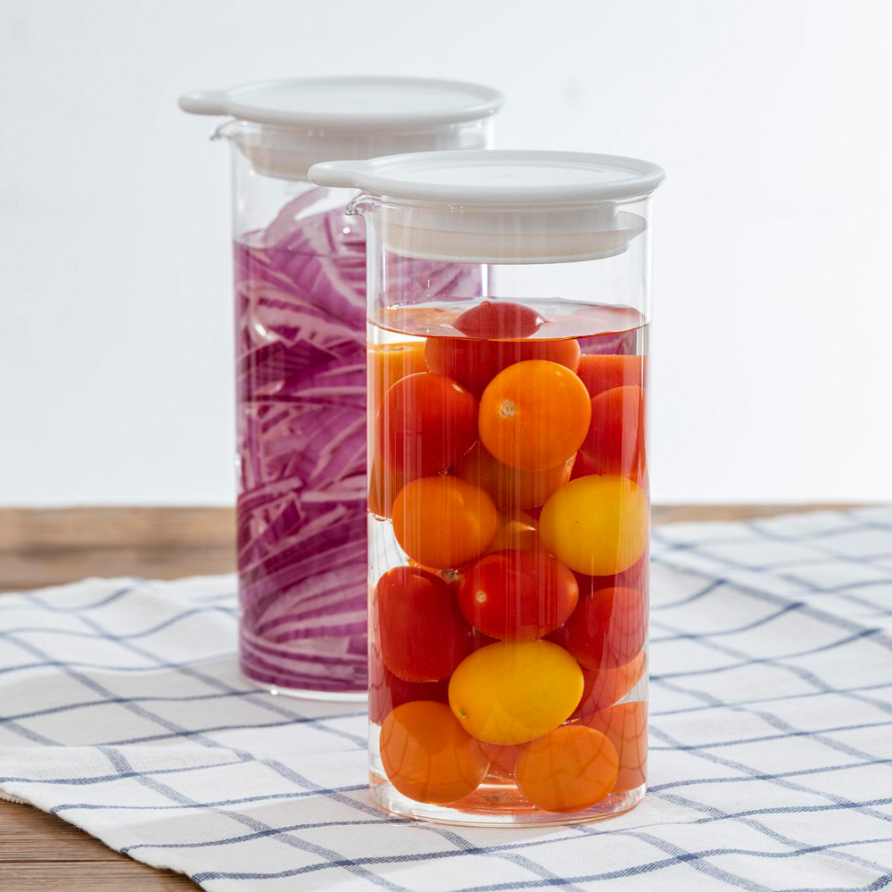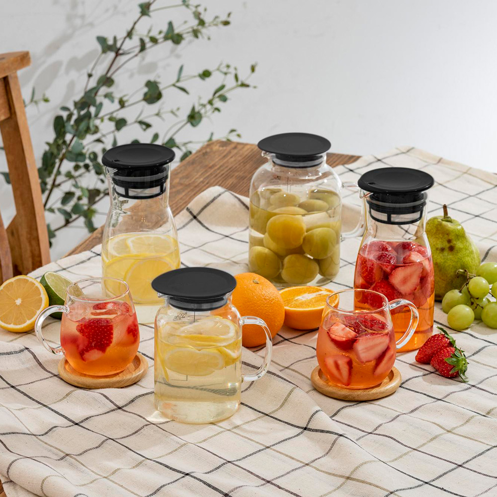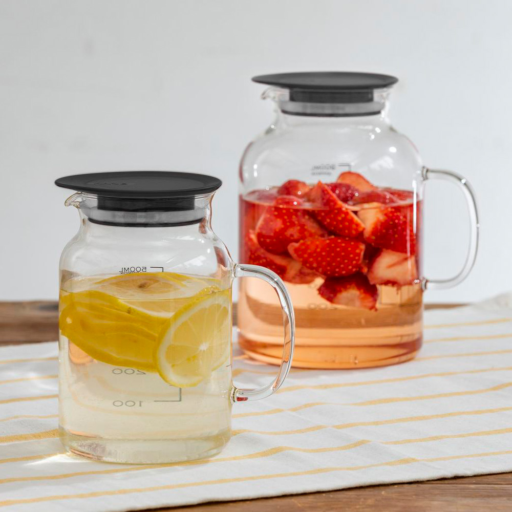 [ドリンクピッチャー・フルーツポット・ピクルスポット]本体:耐熱ガラス、フタ:ポリプロピレン、フタパッキン:シリコーンゴム