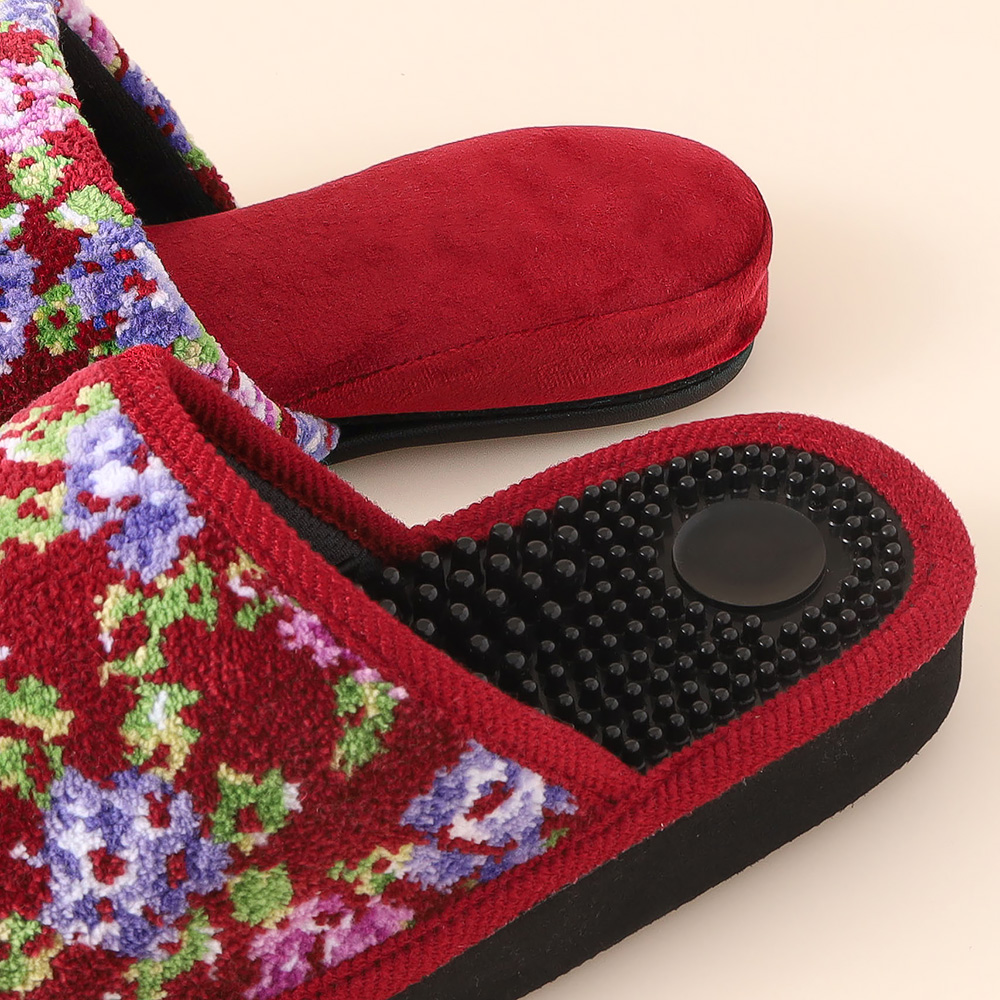滑らかな質感と程よい光沢感で高級感のある釉彩織りで、バラの花を上品な色彩で織り出した、クラシック&エレガントな伝統的な吊り込みスリッパとつぼ押し健康スリッパの2足セット。