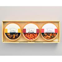 本格ビーフカレーソースに、ハヤシライスソースとトリュフ薫るイベリコ豚ときのこのカレーを加えた、3個入りのセットです。