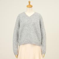 高品質なアルパカの糸を使用。全体はふんわり、ゆったりとしたシルエット、首元はV字型にカットされたデザインなので、首回りをすっきりとシャープな印象にしてくれます。アルパカの毛は、軽量で高い保湿性、なめらかな肌触りが特徴です。