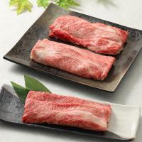 九州の銘柄牛「佐賀牛」「宮崎牛」「鹿児島黒牛」の霜降り肉(肩ロース)をすき焼用にスライスし、詰め合わせました。