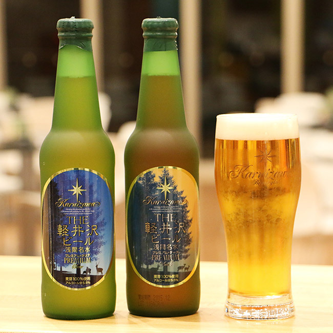 軽井沢浅間山の清らかな冷涼名水で仕込んだクラフトビール。世界的な日本画家・千住博画伯と軽井沢千住博美術館の協力を得たプレミアムなラベル(プレミアムクリア・プレミアムダーク・清涼飛泉プレミアム)も特徴です。