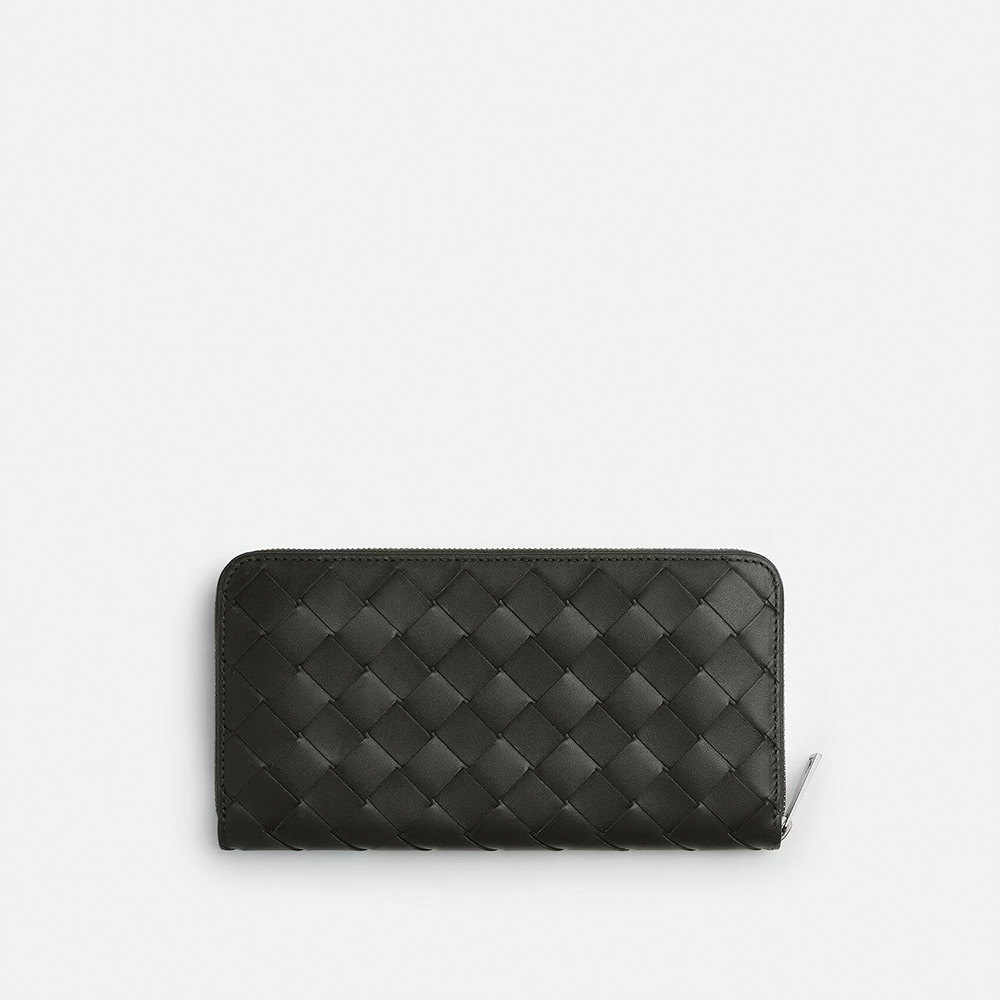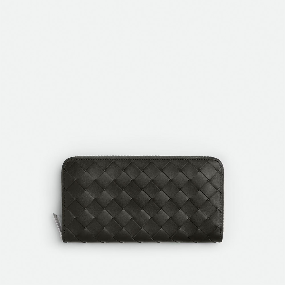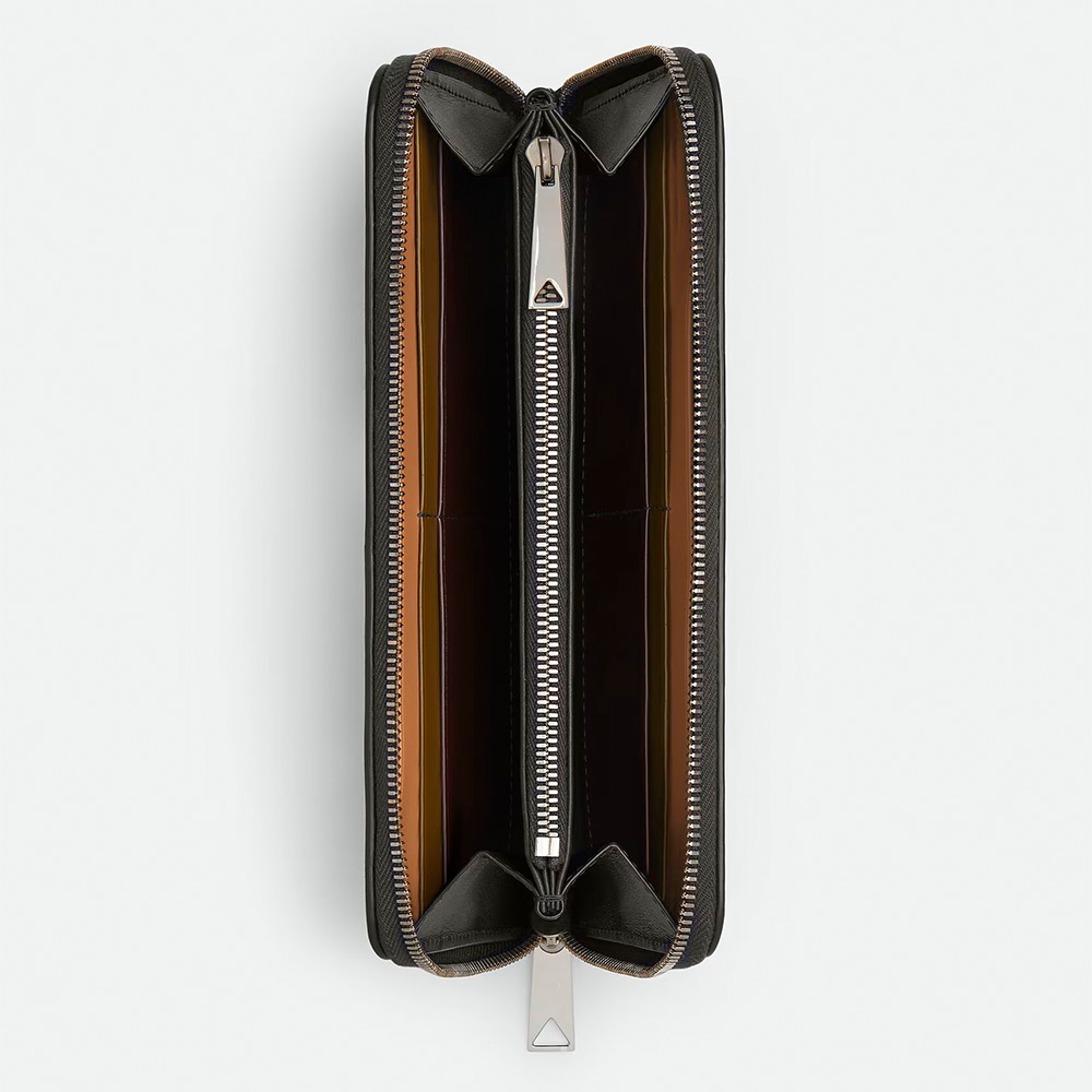 内側にマルチカラーを配した、イントレチャートカーフレザーのジップアラウンドウォレットです。