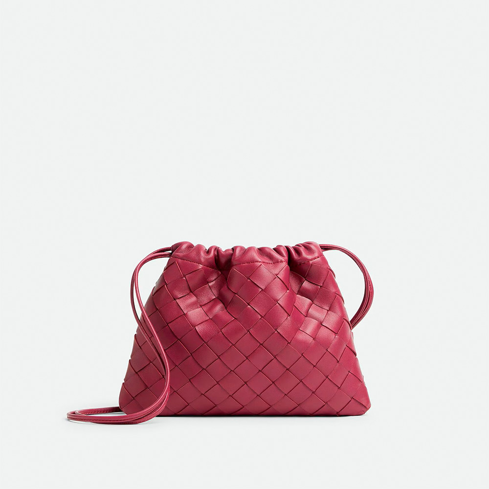 ドローストリングクロージャーにクロスボディバッグとして使えるループが付いた、イントレチャートカーフレザーのダストバッグです。
