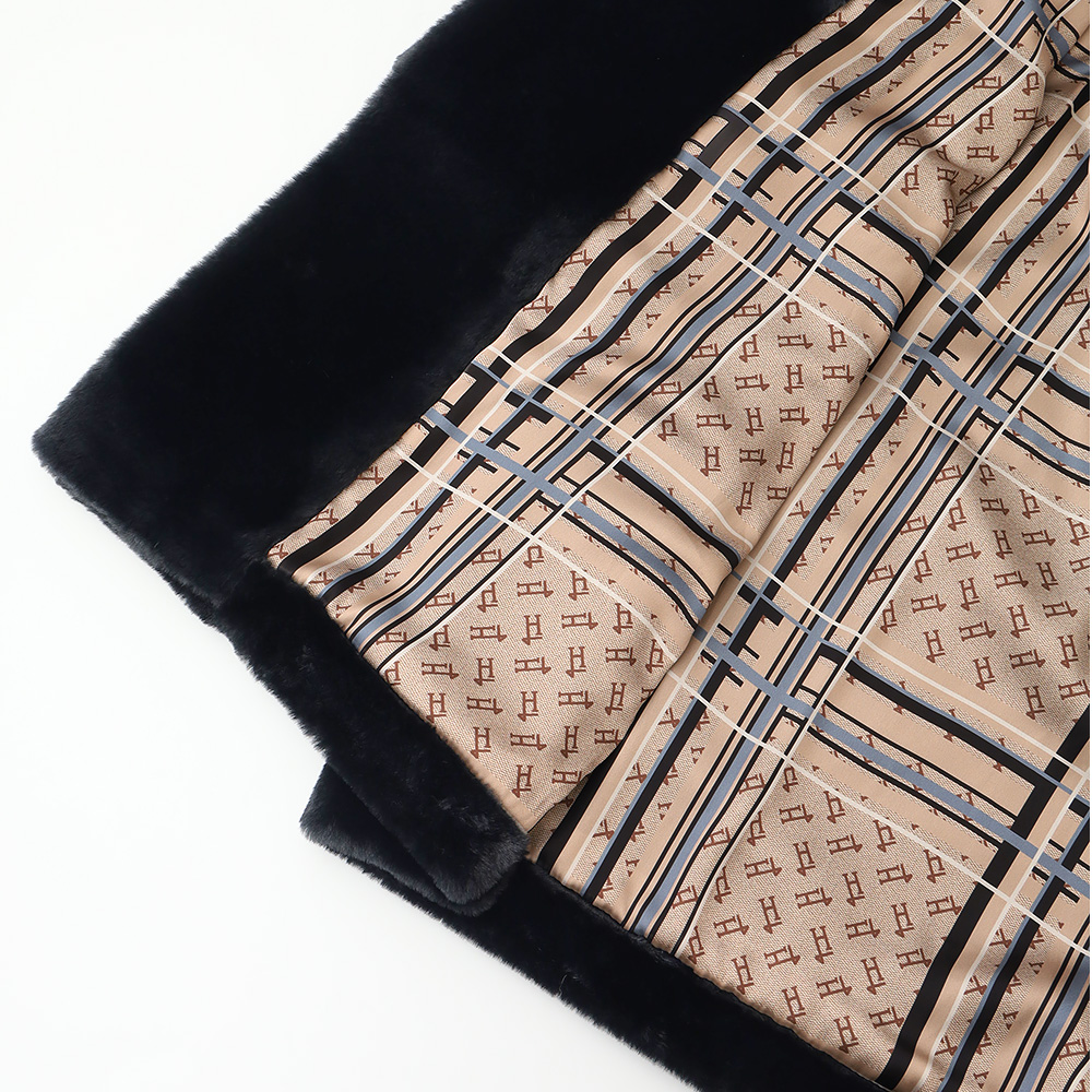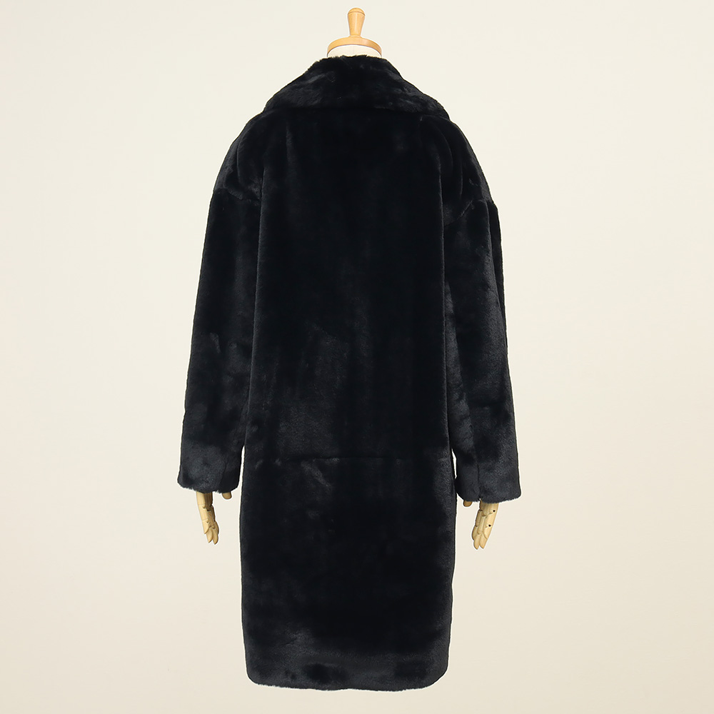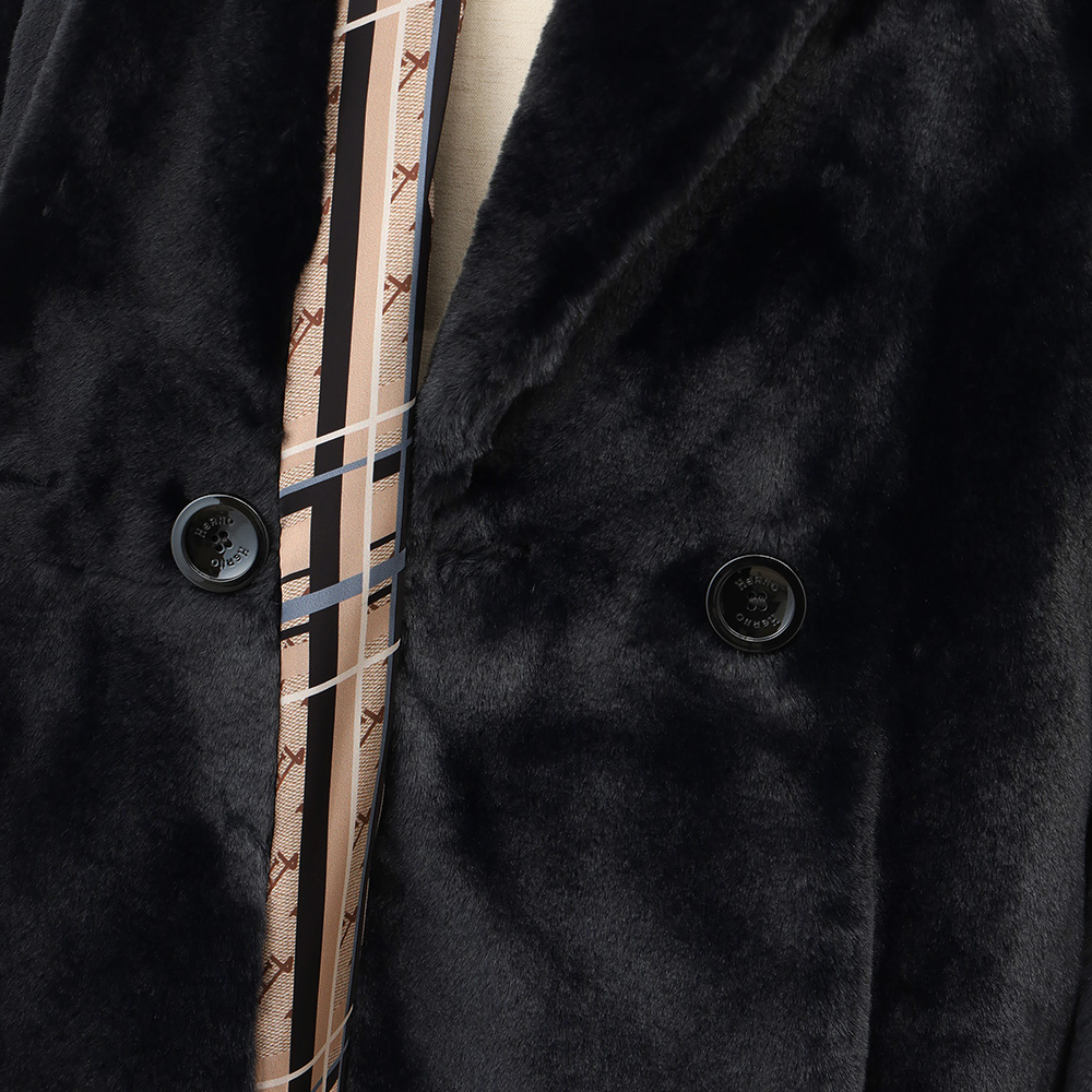 【日本限定モデル】肌触り滑らかな質感が特徴のエコファーロングコート。Wボタンのラグジュアリーな表情に加え、裏地にはスペシャルなヘルノロゴパターンを使用、高級感と抜け感の両軸を併せ持つデザインです。