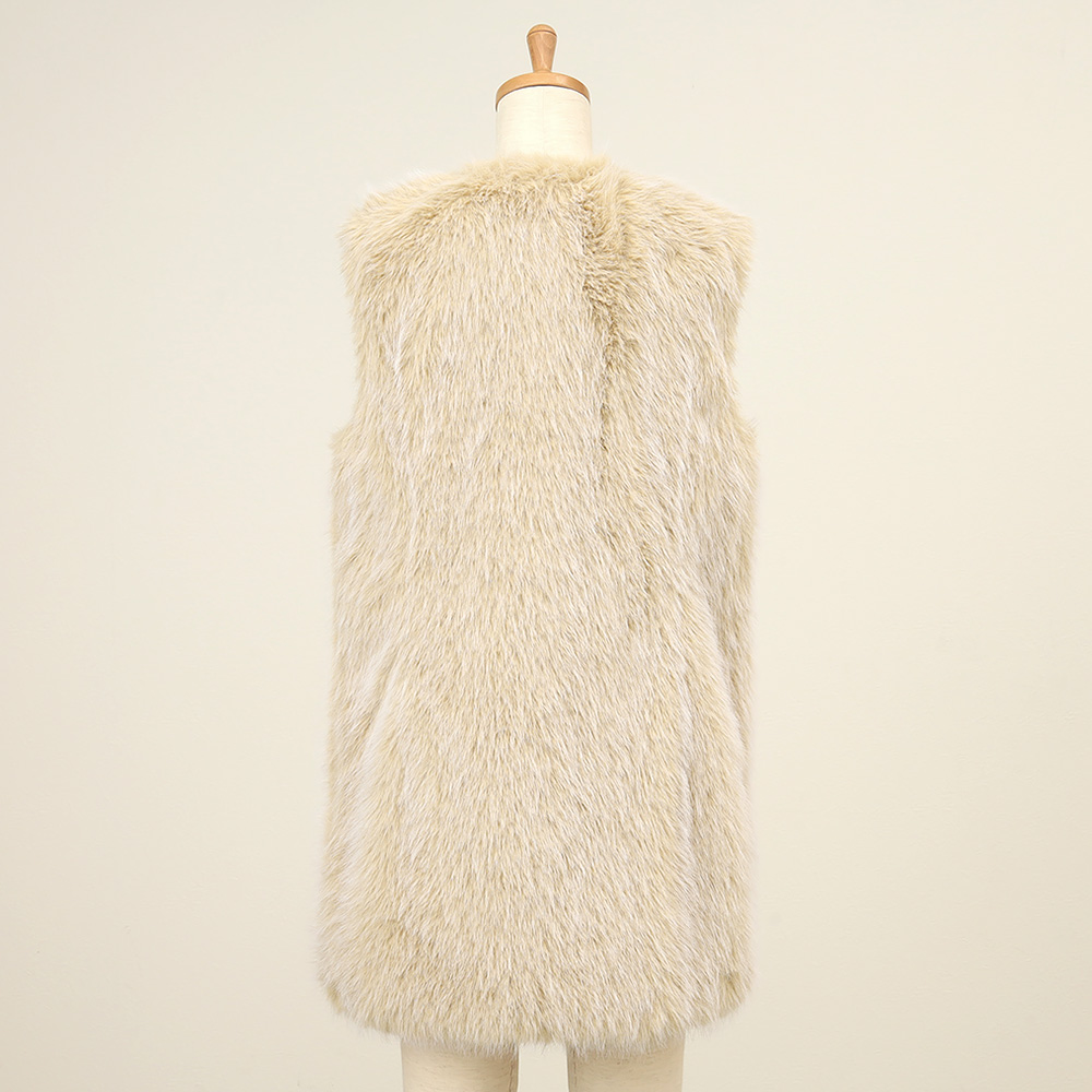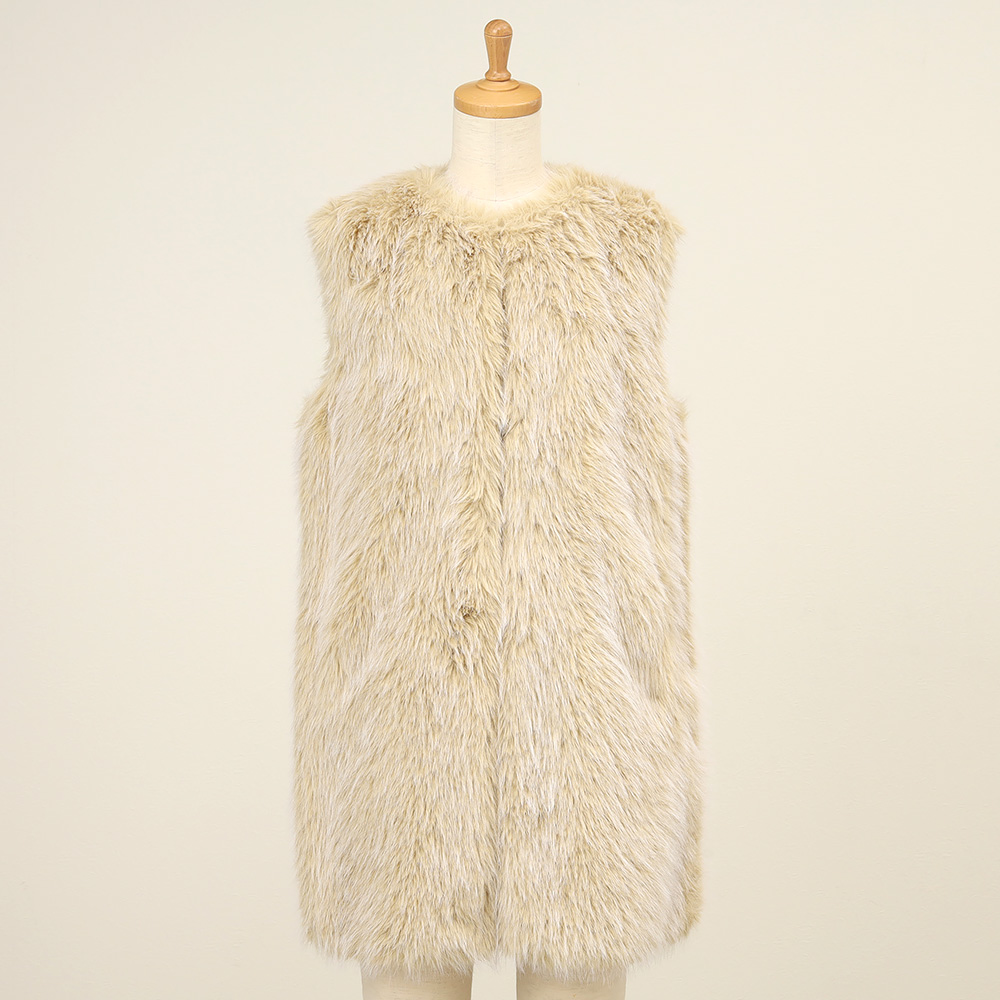 ”旅”をキーワードにラグジュアリー&コンフォータブルに特化したライン”HERNORESORT”。ミニマルなデザインに、毛足の長い艶めくファーと絶妙な丈感が特徴のエコファーロングジレ。全面ファーにすることでより華やかで贅沢な着用感を楽しめます。軽やかな着心地も特徴。