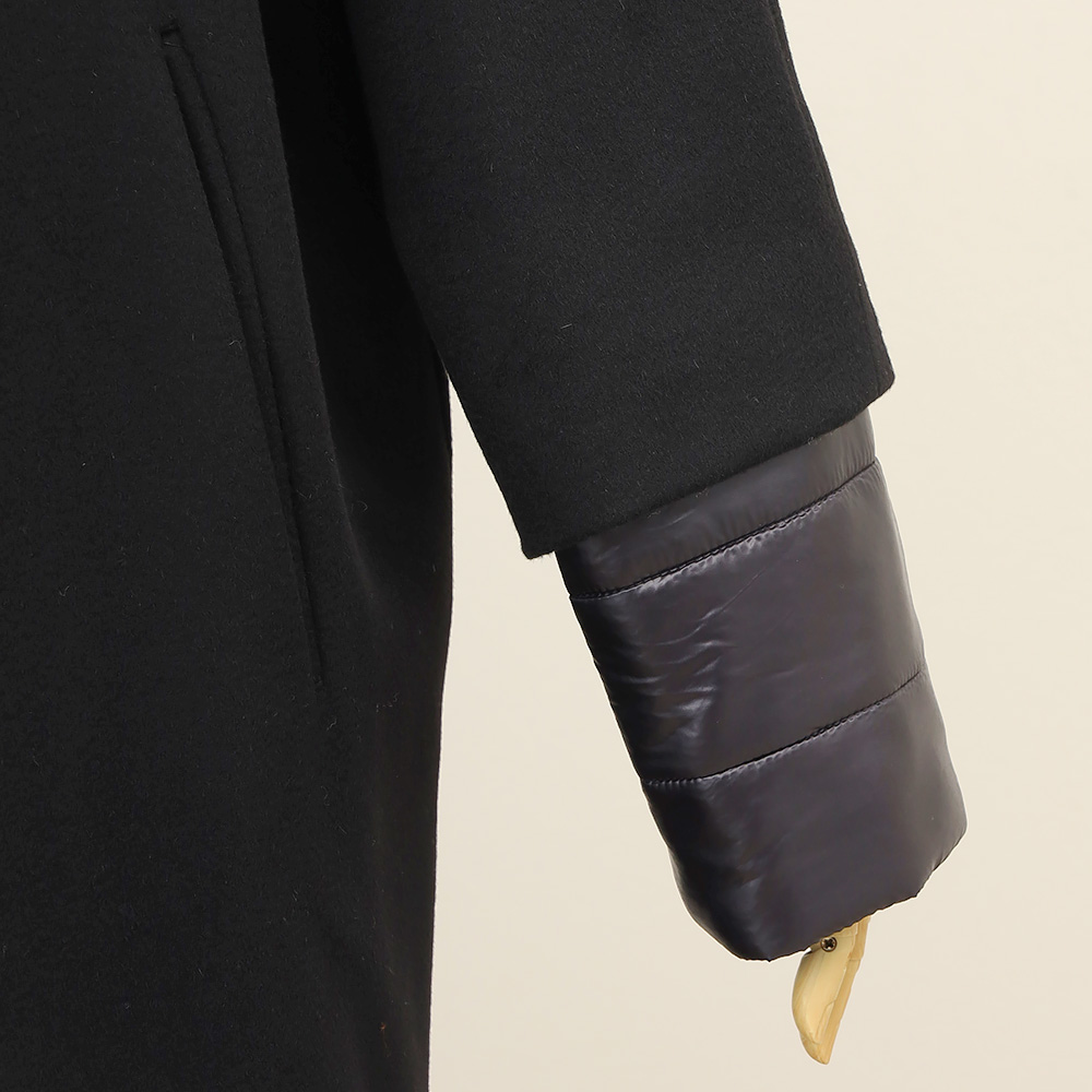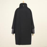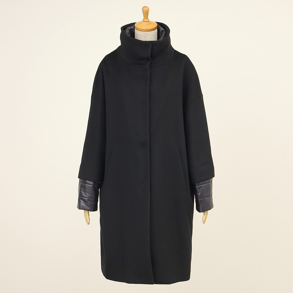 大ぶりなスタンドカラーが特徴のロングコート。カシミヤさながらの上品な光沢とうねり、柔らかな肌触りが特徴。ミニマルなデザインが上質なファブリックを際立たせます。快適な着用感を合わせ持つラグジュアリーモデル。ナイロン部分の袖口と前立付き(着脱可)で防寒性も高い。機能性中わたにすることでより軽い着用感に仕立てました。
