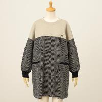 1日中着用しても疲れにくい、伸縮性のあるニット素材を使用したかっぽう着。さりげなく光るラメが上品な印象を与えます。