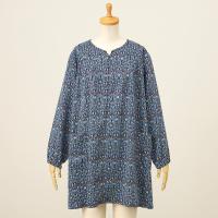 植物の間に見え隠れする小さな実と小鳥のモチーフが可愛らしいプリントのスモックです。暖かく肌触りの良い微起毛素材を使用しています。