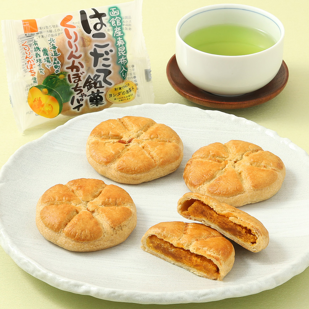 北海道・みよい農園で有機栽培された、「くりりんかぼちゃ」を使ったパイです。パイ生地には函館名産の真昆布の粉末を入れることにより、かぼちゃあんを引きたてます。