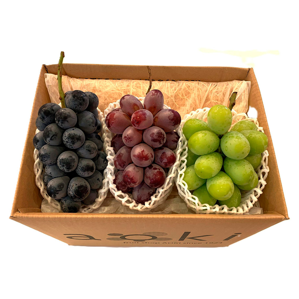 シャインマスカット:長野県産(350g)×1房、クイーンルージュ:長野県産(350g)×1房、ナガノパープル:長野県産(350g)×1房