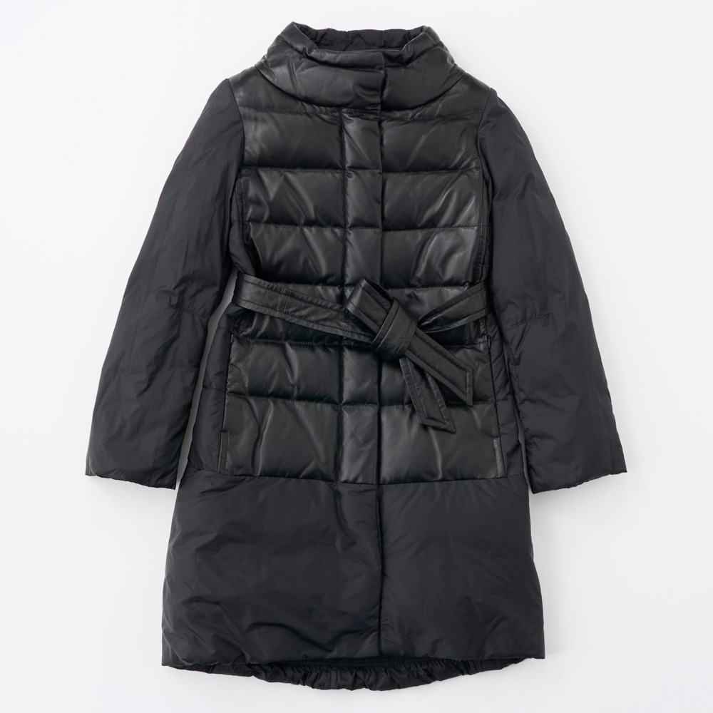 部分的にレザーを使用した上質感のあるダウンコートです。
